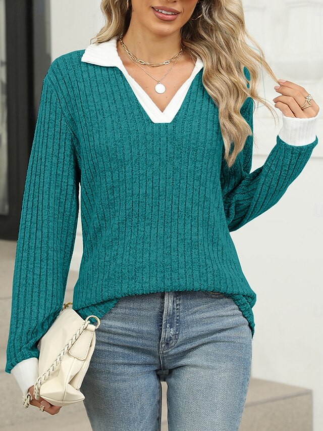 More information about Women's T Shirt Casual Solid Color Long Sleeve Long Tops Shirt Collar Daily Black Blue Green Spring Fall