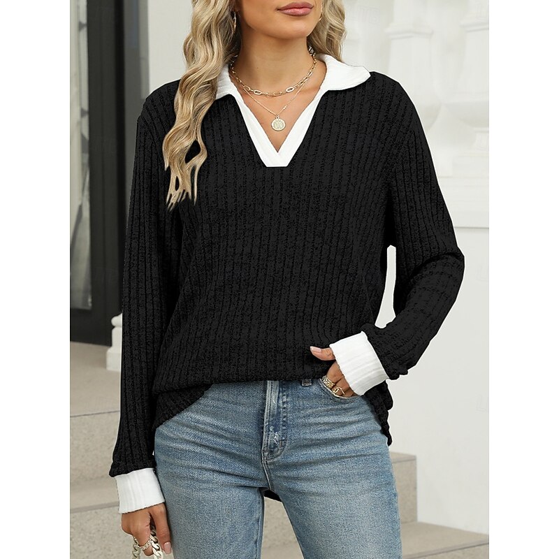 : Women's T-Shirt: Solid Color Daily Casual Long Sleeve Shirt Collar for Spring and Fall