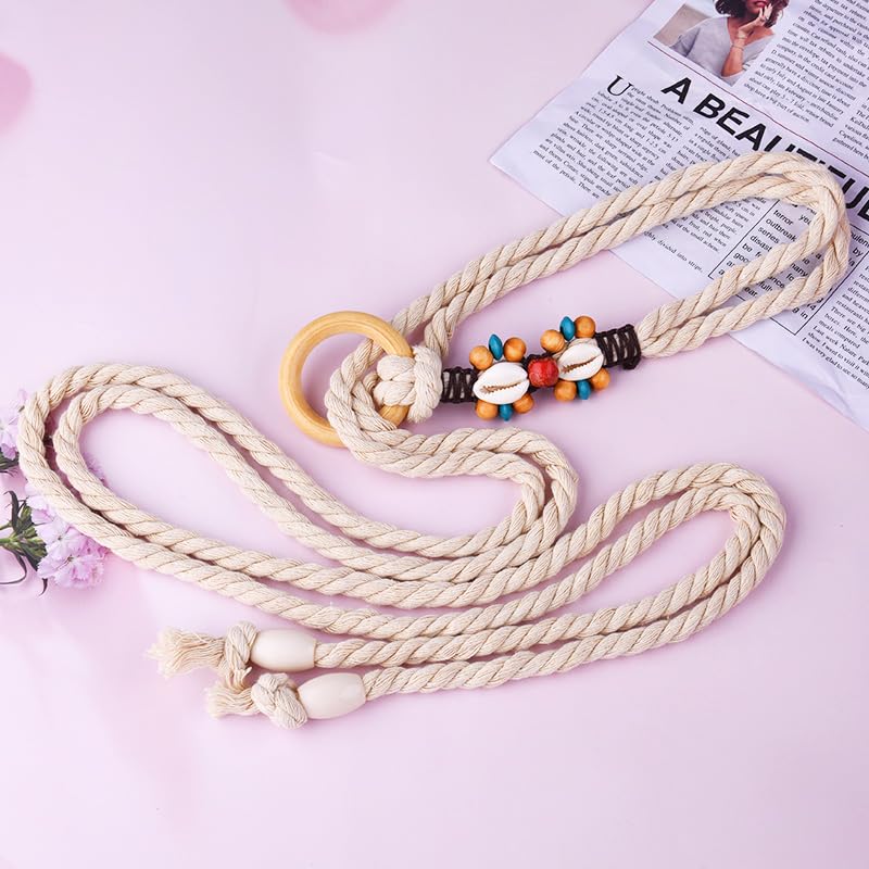 • Bohemian Style Rope Belt Design: The design feature of the rope belt is that a yellow circular ring is used as a node, with colorful small beads and shells strung on the side, two ends of the belt are decorated with small tassels and off-white beads of the same color series, adding vitality and a sense of uniqueness, womens white rope belts can be easily matched with any clothing, bohemian rope braid belt can all add highlights to your outfit