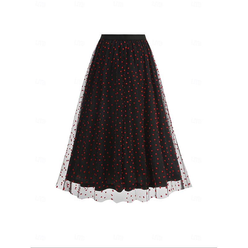 Retro Vintage 1950s Skirt Heart Fancy Dress Women's Masquerade Daily Wear Bachelorette Party Adults' Skirt 25