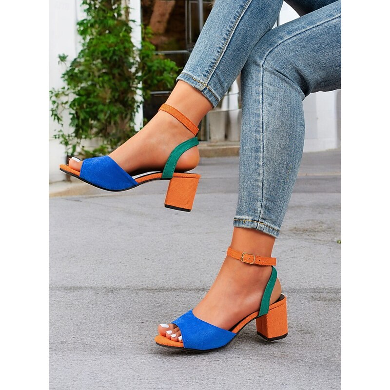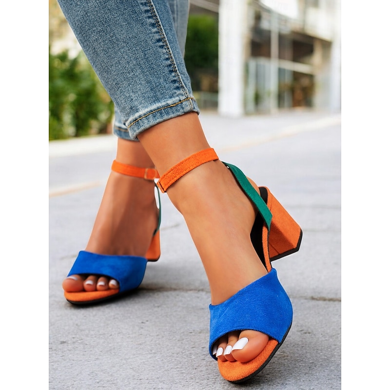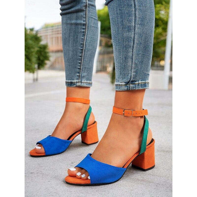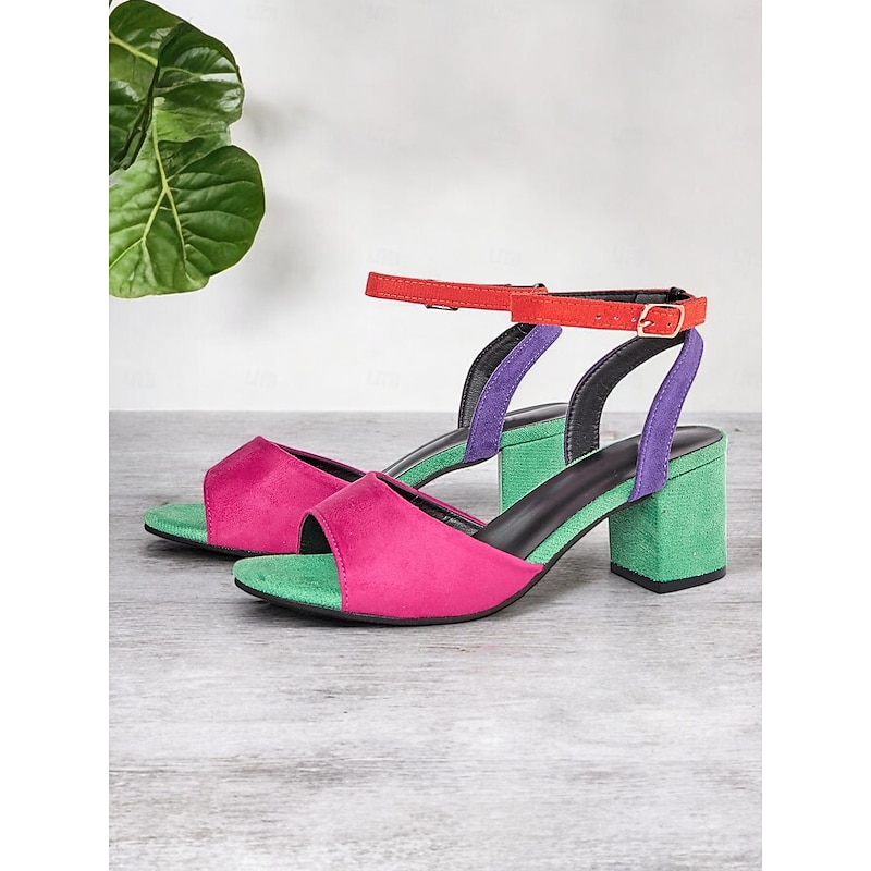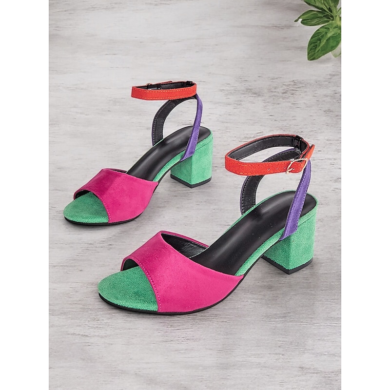 HOT ! Women's Multicolor Faux Suede Open-Toe Block Heel Sandals with Adjustable Ankle Strap – Trendy and Comfortable for Summer, Parties and Casual Wear