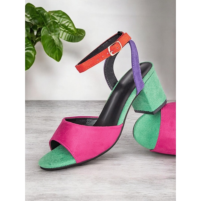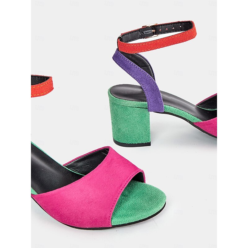 Women's Multicolor Faux Suede Open-Toe Block Heel Sandals with Adjustable Ankle Strap – Trendy and Comfortable for Summer, Parties and Casual Wear 12