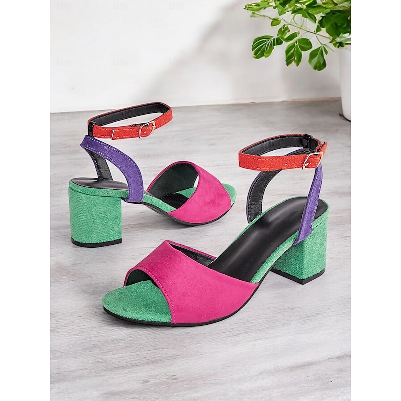 Women's Multicolor Faux Suede Open-Toe Block Heel Sandals with Adjustable Ankle Strap – Trendy and Comfortable for Summer, Parties and Casual Wear 18