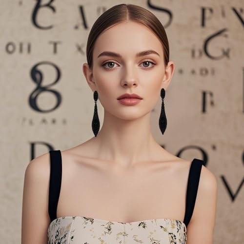 • Excellent Quality:This black dangle earrings for women is made of good quality alloy material.Black full diamond inlay is firm, not easy to fall off, so that you can enjoy the beauty at the same time, but also have a long-term wearing experience. Whether it is for personal use or gift, it is the choice of quality