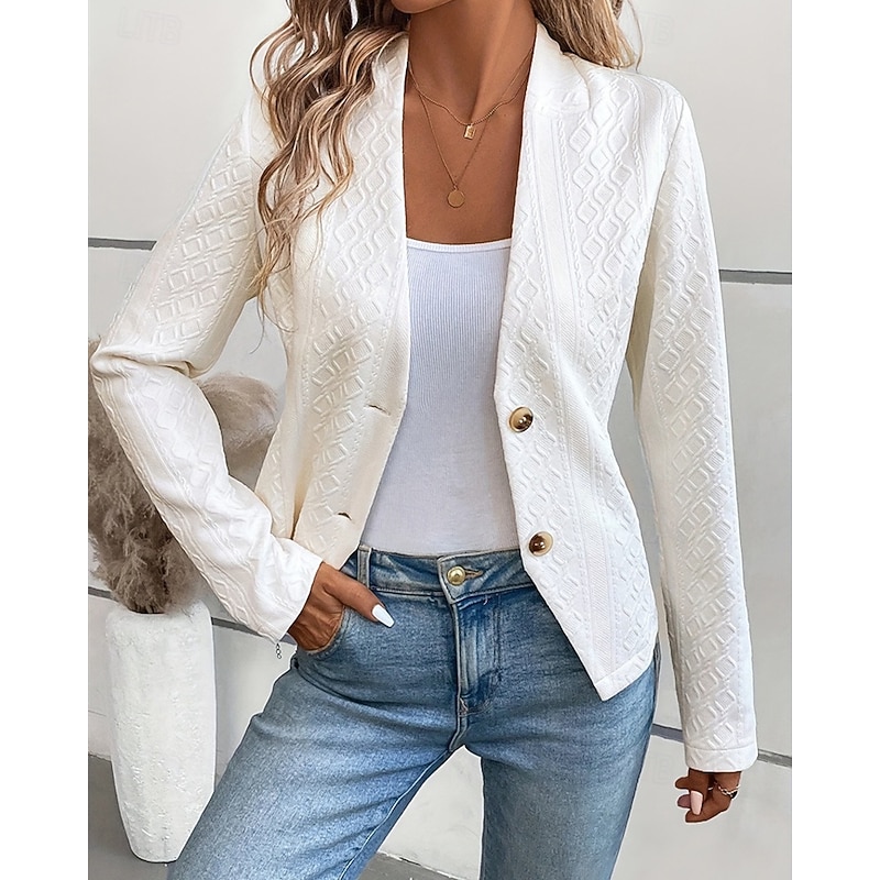 HOT ! Women's Casual Jacket Comfortable Breathable Jacquard Fashion Daily Plain Outdoor Casual Daily Single Breasted Short Collarless Regular Fit Long Sleeve Outerwear White Spring Fall
