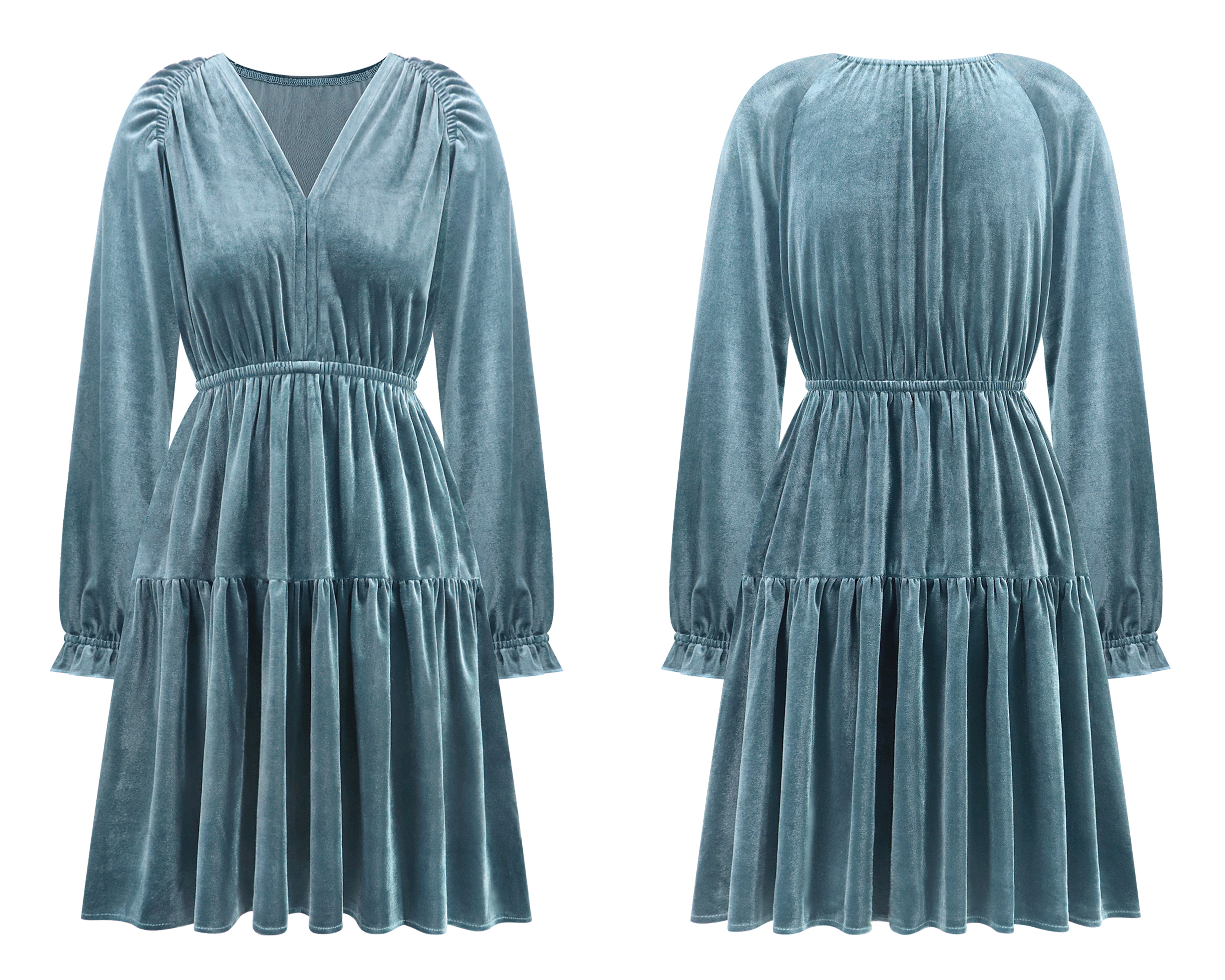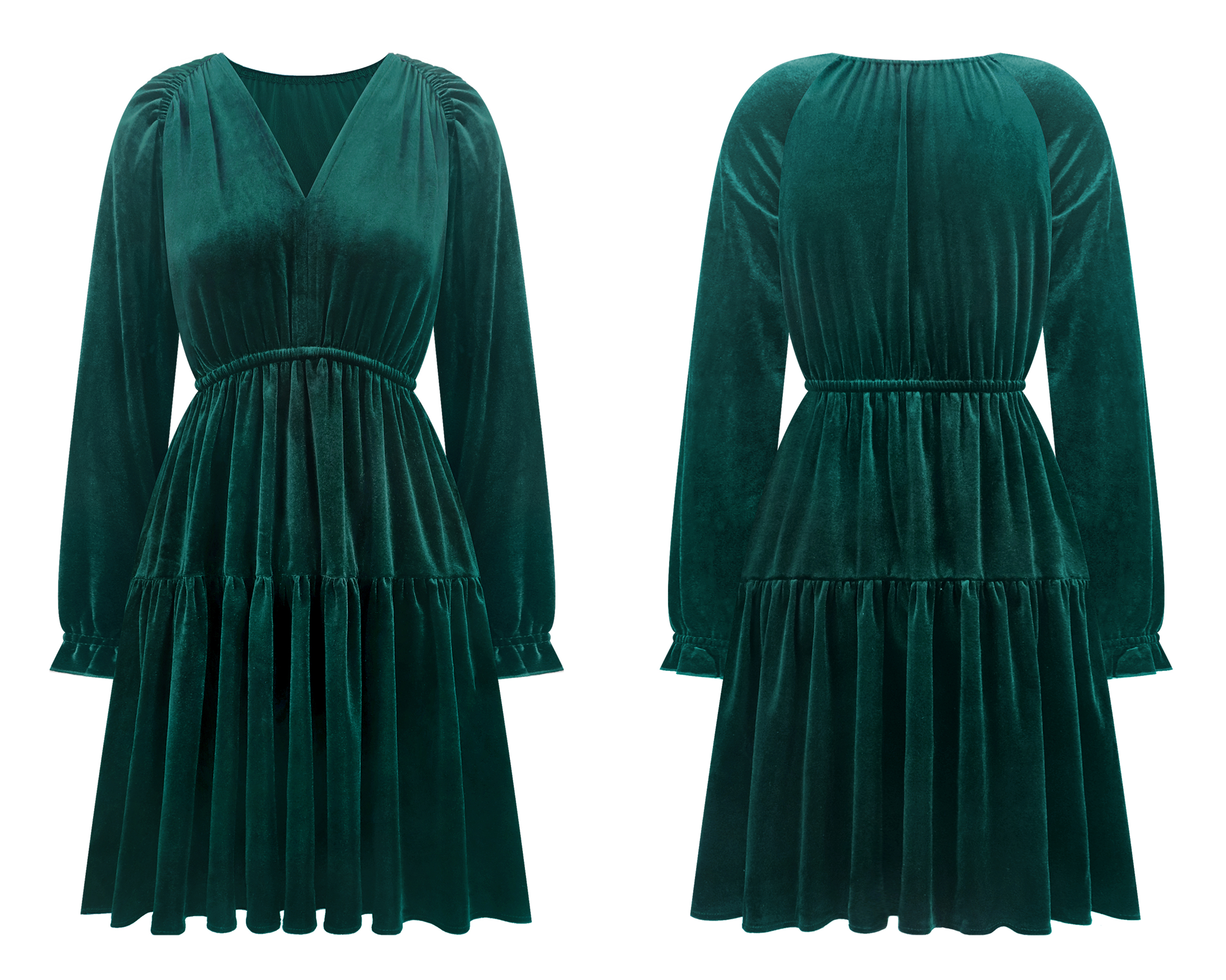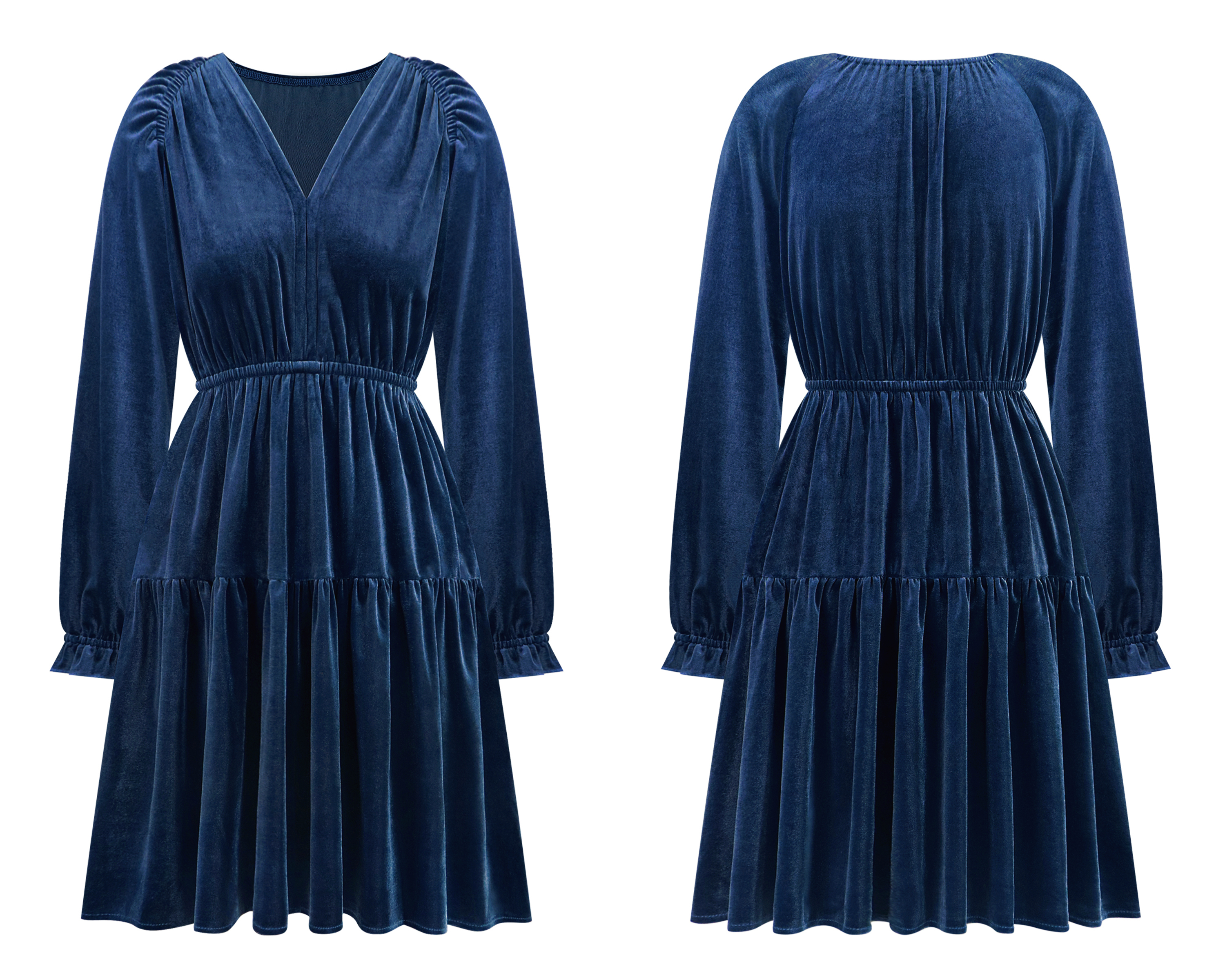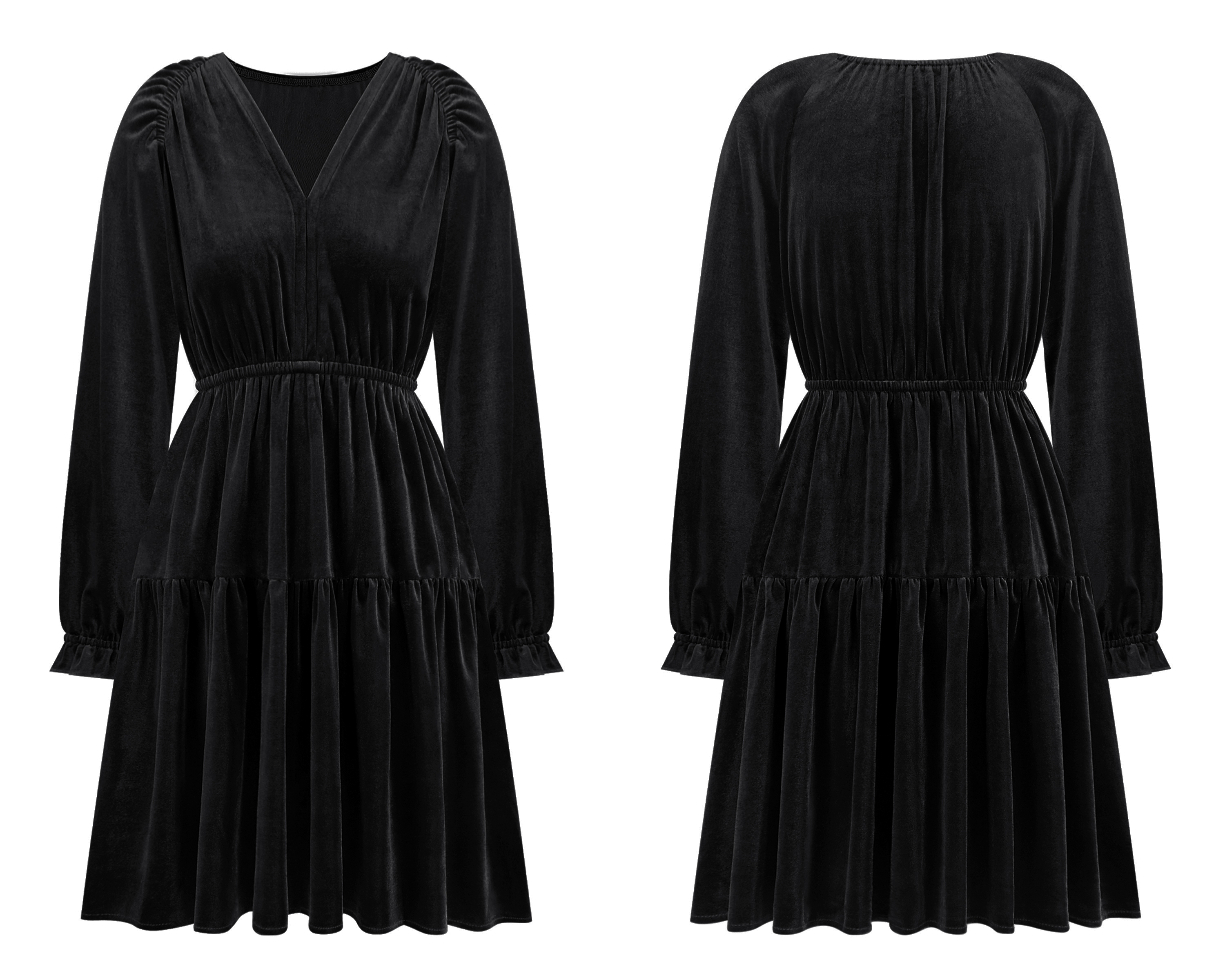 More information about R.Vivimos Womens Fall Velvet Mini Dress V Neck Long Sleeve Elastic Waist Winter Tiered Flowy Swing A-Line Dress with Pockets