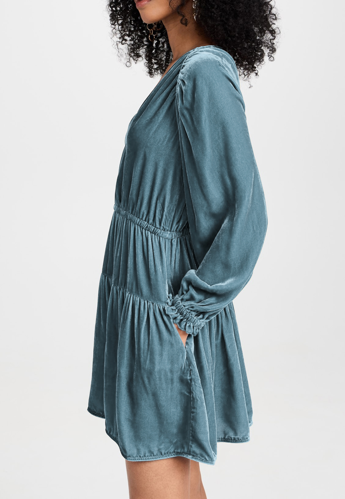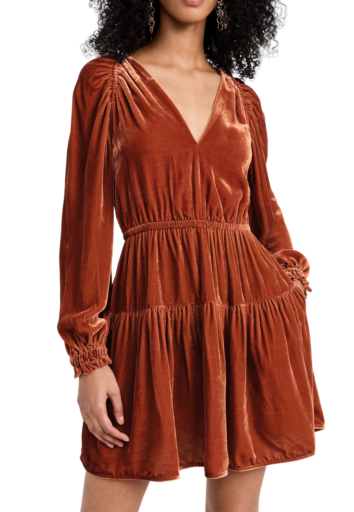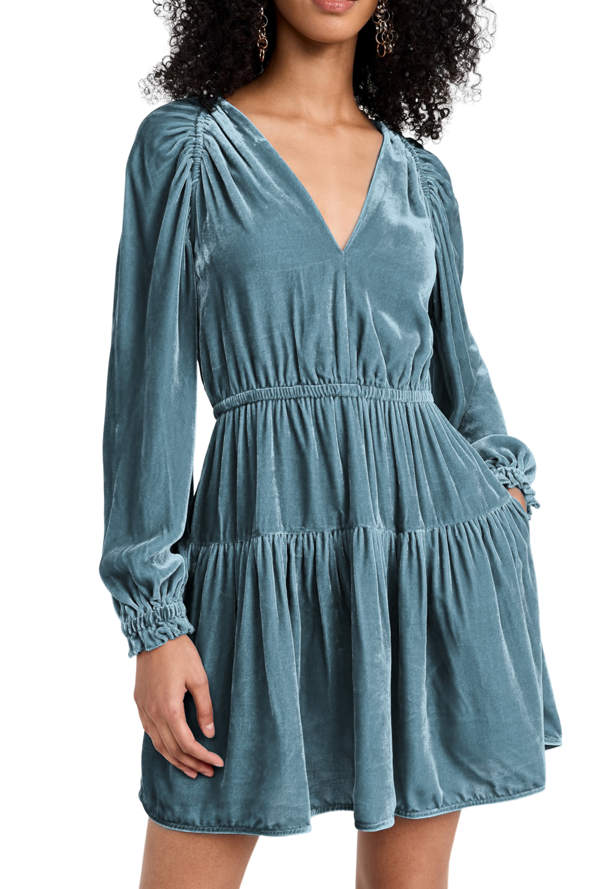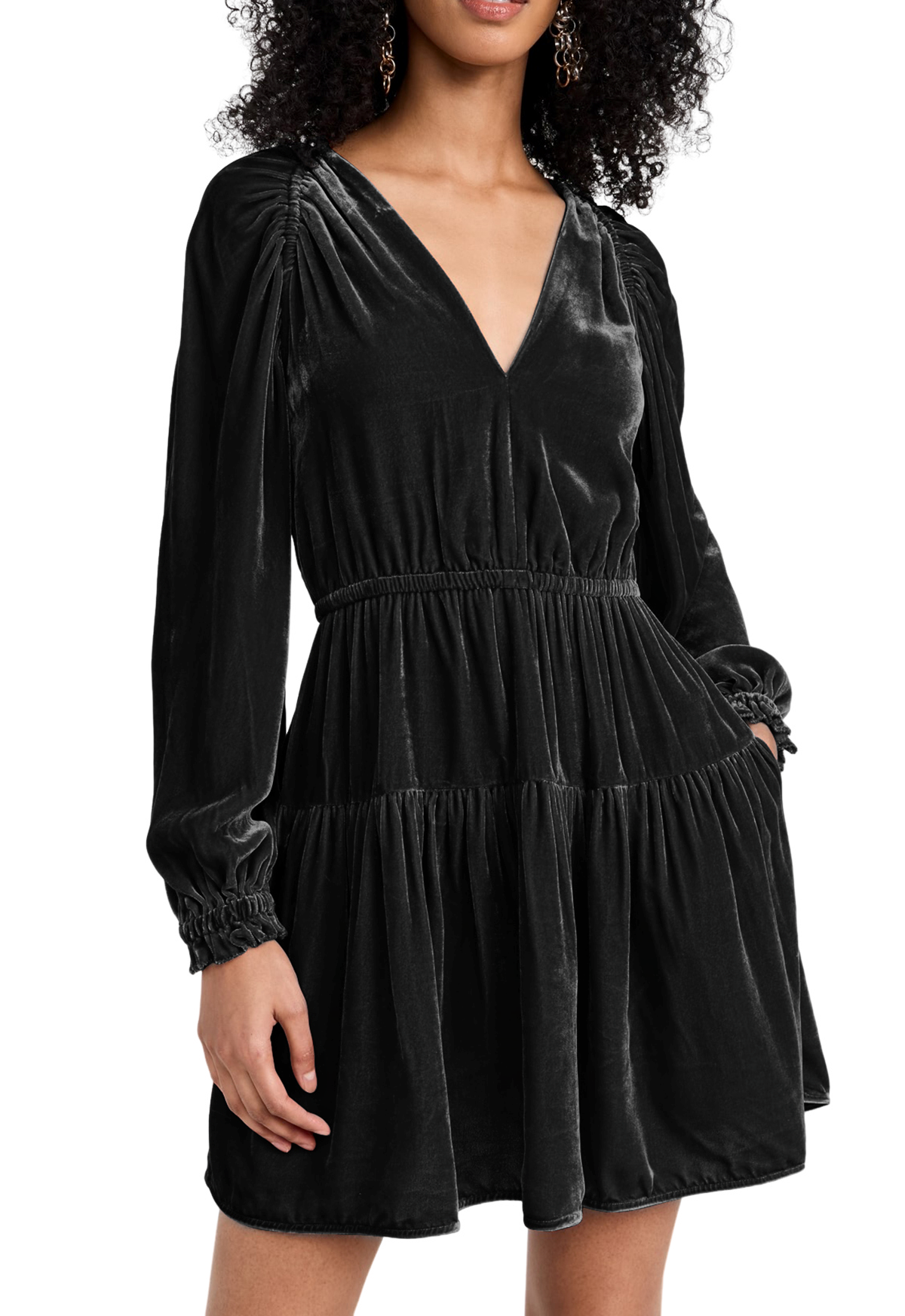 More information about R.Vivimos Womens Fall Velvet Mini Dress V Neck Long Sleeve Elastic Waist Winter Tiered Flowy Swing A-Line Dress with Pockets