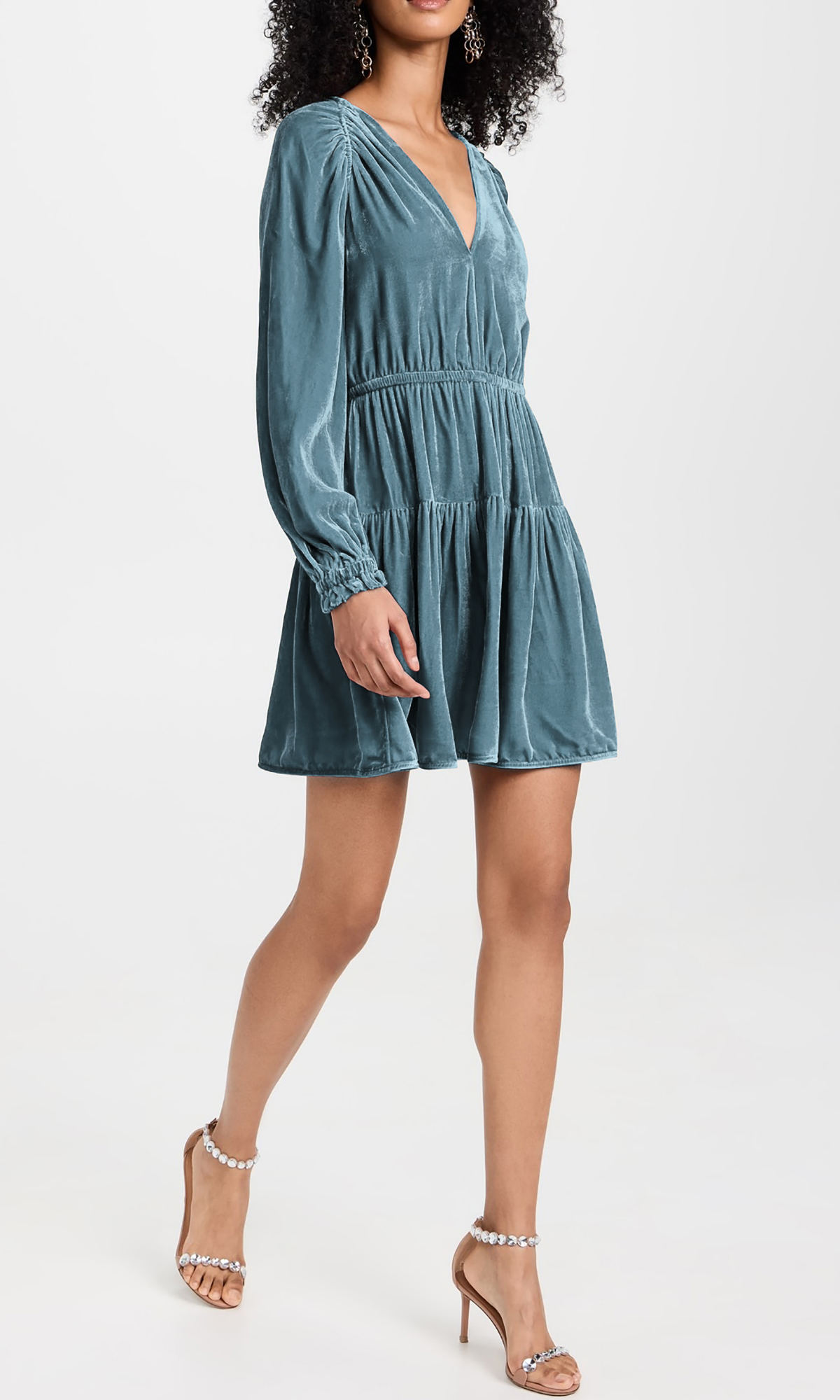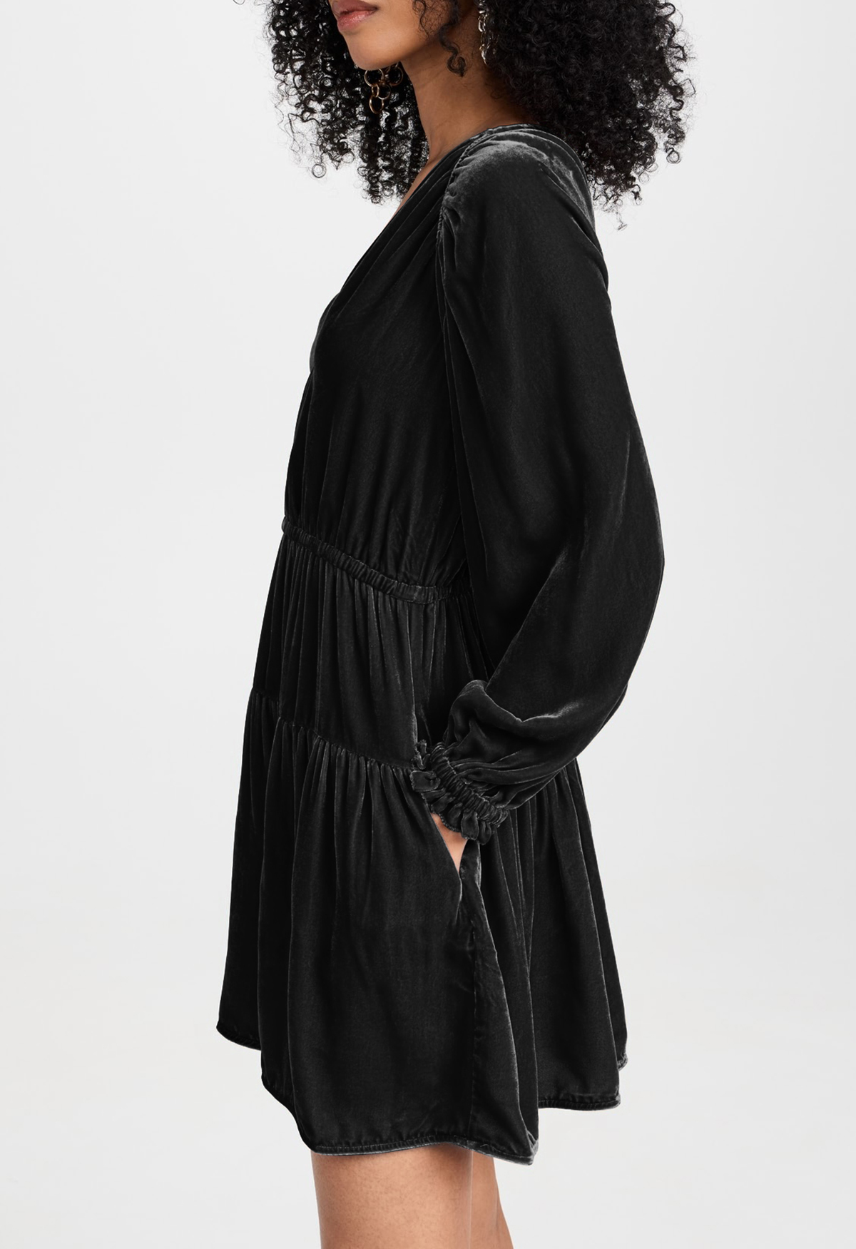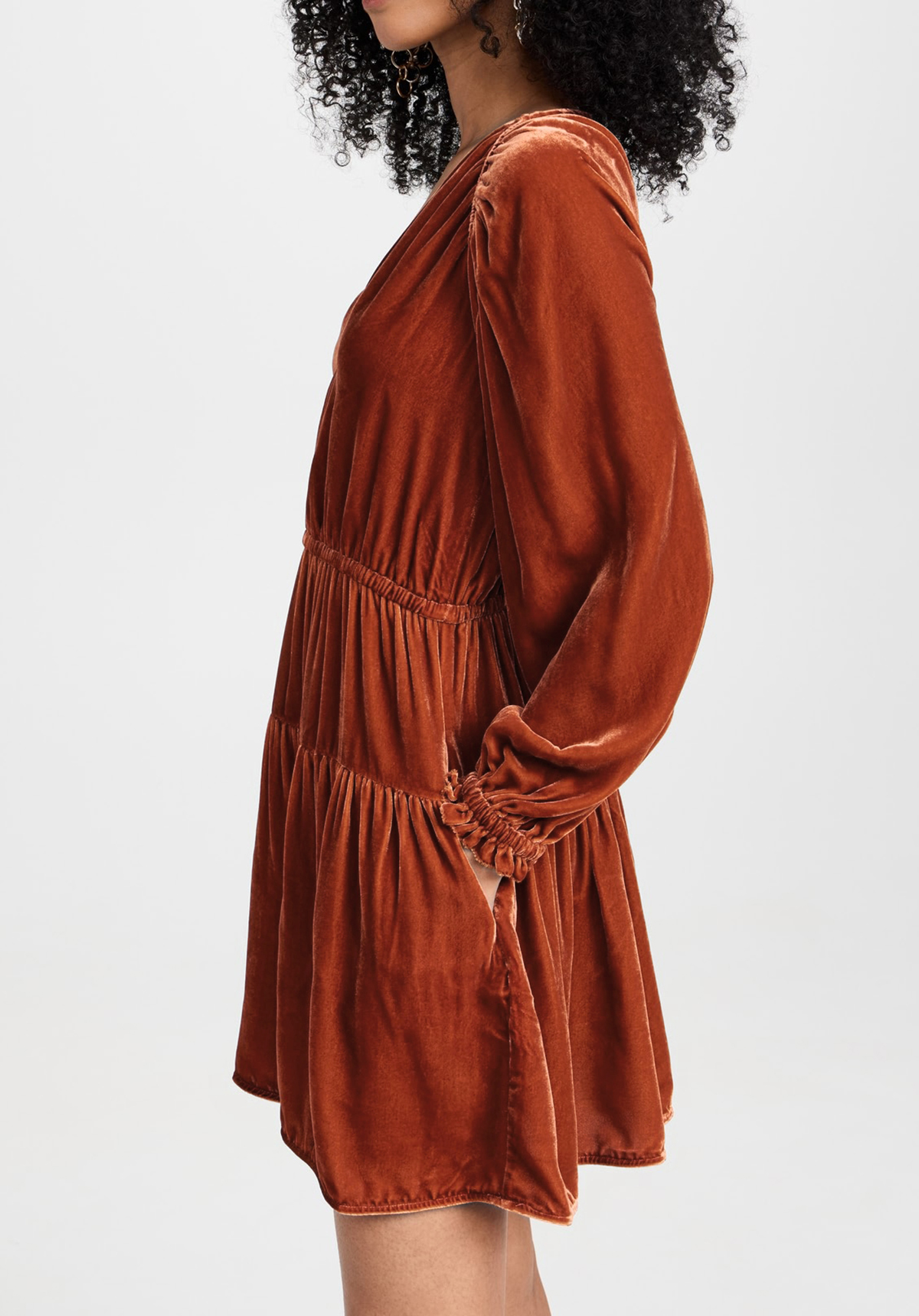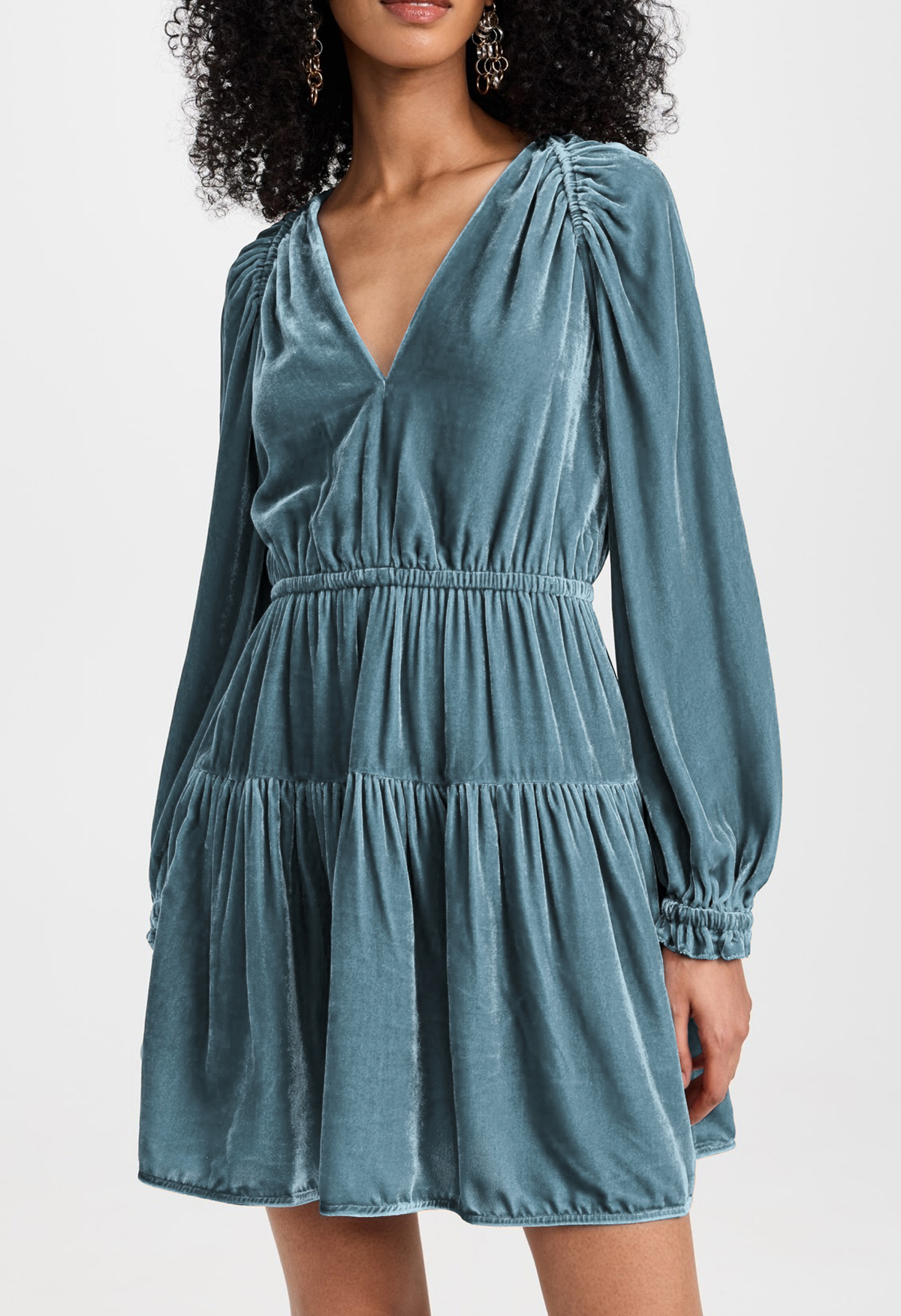 More information about R.Vivimos Womens Fall Velvet Mini Dress V Neck Long Sleeve Elastic Waist Winter Tiered Flowy Swing A-Line Dress with Pockets