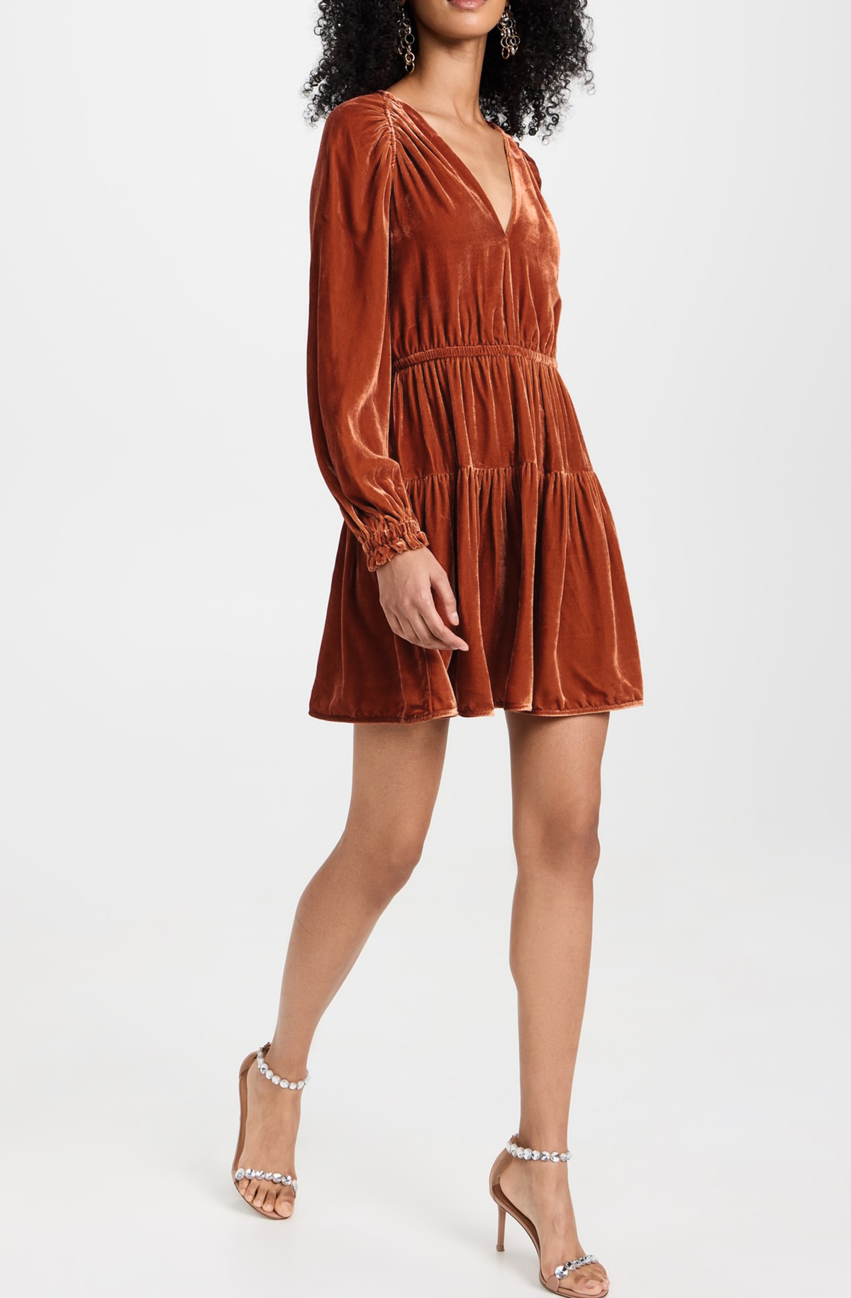 R.Vivimos Womens Fall Velvet Mini Dress V Neck Long Sleeve Elastic Waist Winter Tiered Flowy Swing A-Line Dress with Pockets 11