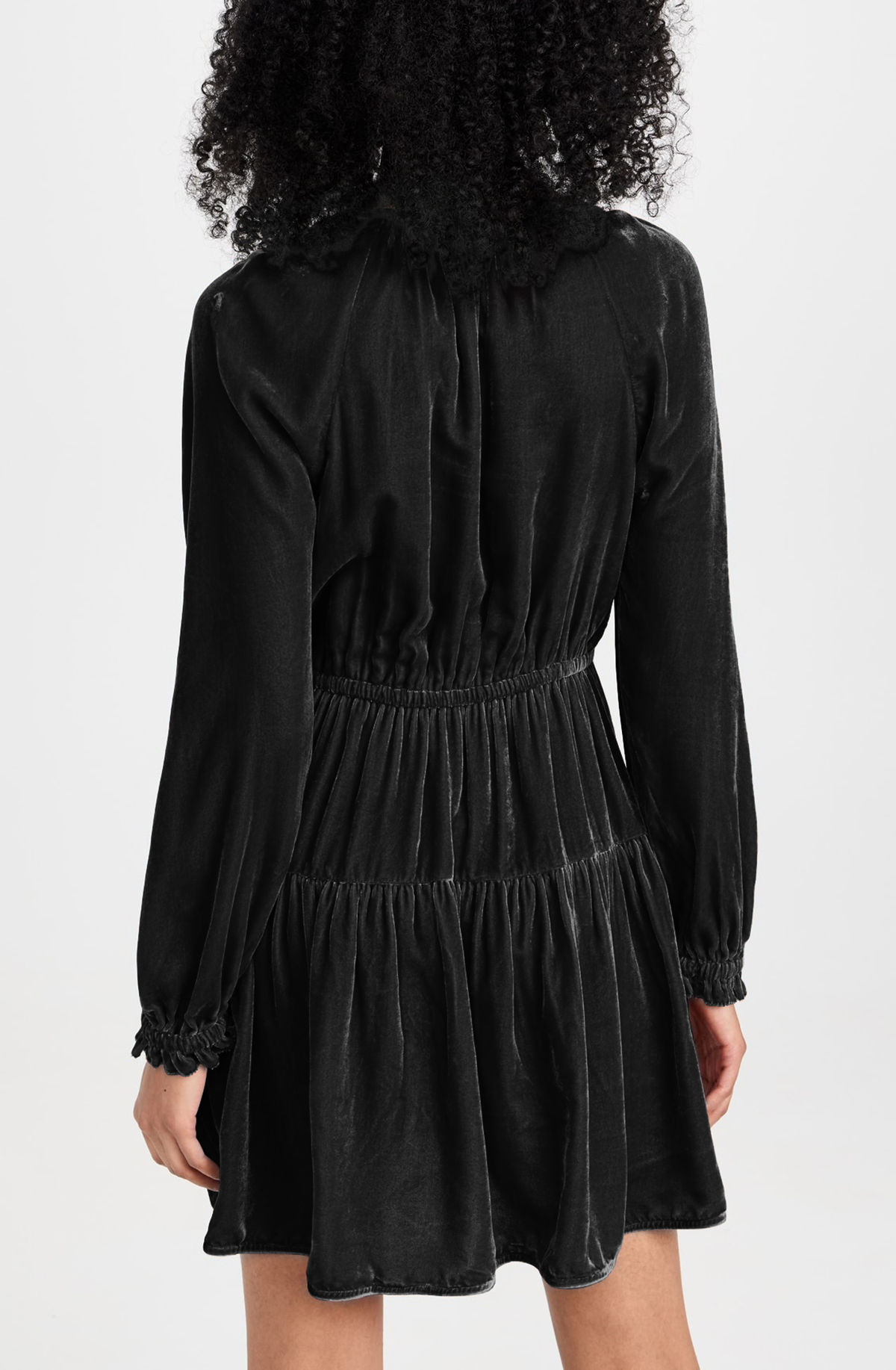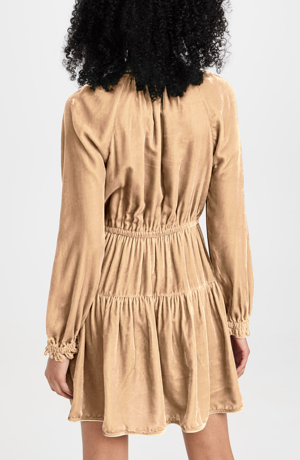 R.Vivimos Womens Fall Velvet Mini Dress V Neck Long Sleeve Elastic Waist Winter Tiered Flowy Swing A-Line Dress with Pockets 17