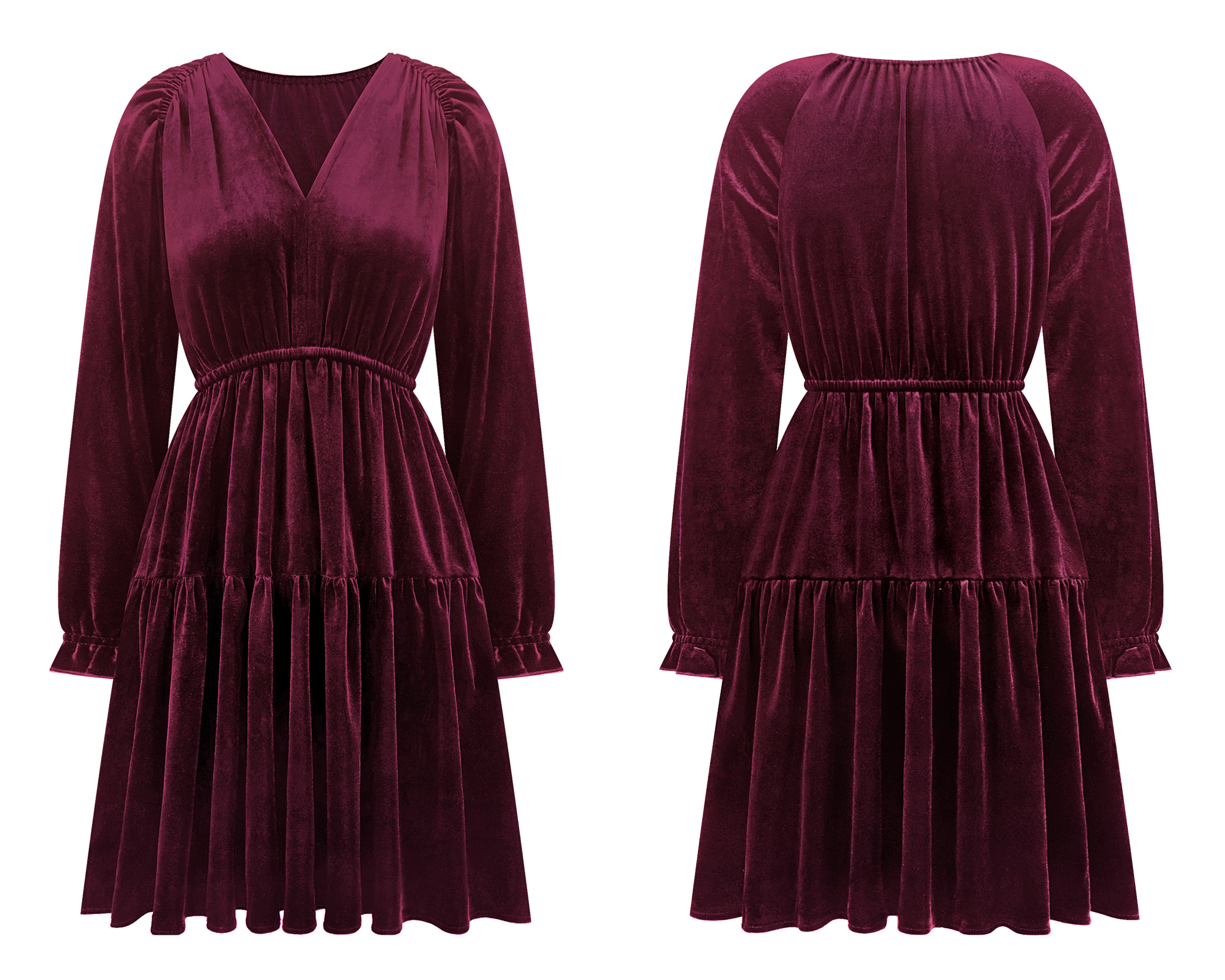 R.Vivimos Womens Fall Velvet Mini Dress V Neck Long Sleeve Elastic Waist Winter Tiered Flowy Swing A-Line Dress with Pockets 7