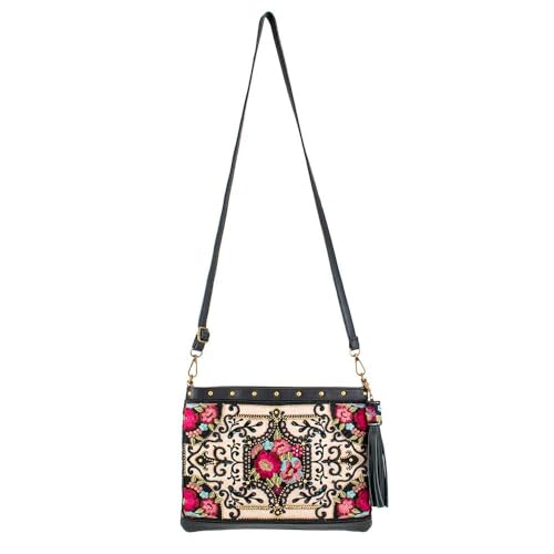 • Bohemian Elegance: Features detailed floral embroidery and hand-beaded accents in rich magenta and violet tones. This standout crossbody bag adds romantic, boho sophistication to casual or dressy outfits alike.