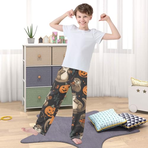 Halloween Otter Pumpkin Boys Long Pants Soft Trousers Elastic Waist Kids Lounge Bottoms with Pockets S-XL 1