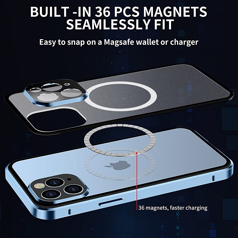 More information about Phone Case For iPhone 14 Pro Max Plus 13 12 11 Pro Max Magnetic Adsorption With Magsafe Double Sided Shockproof Tempered Glass Metal