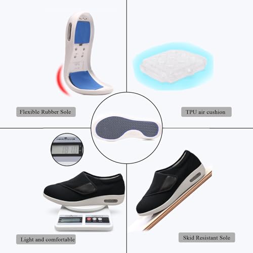 Diabetic Shoes for Men Extra Wide Width Elderly, Lightweight Non Slip Air Cushion Bottom Slipper Fattening and Widening for Swollen Feet Outdoor Walking Shoes 4