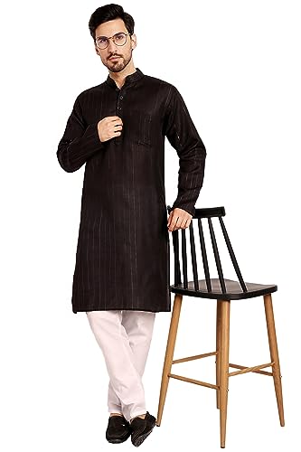 • HIGH QUALITY MATERIAL: Lightweight and breathable material gives this kurta pajama set soft, comfortable feel. Made from cotton blend fabric. The kurta is lightweight with vented side. Designs feature modern and innovative details that appeal to everyone.