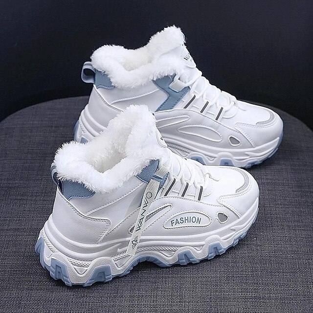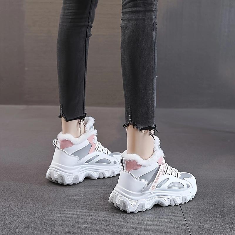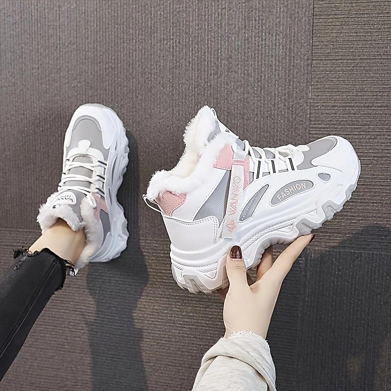 HOT ! Women's White Winter Sneakers with Plush Lining and Chunky Sole - Warm High-Top Athletic Shoes for Cold Weather