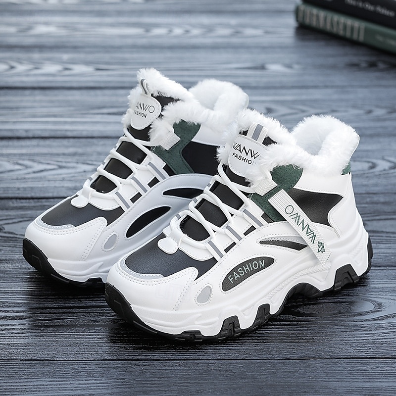 Highlights [Fabric and Material] These women’s high-top sneakers are crafted from high-quality PU synthetic leather, delivering both durability and a sleek, polished look. The interior features a plush faux fur lining that provides superior warmth and comfort during the winter months. [Design and Fit] With a chunky sole, these sneakers not only follow the latest trend but also ensure excellent grip and stability on various surfaces. The flat heel design promotes all-day comfort, while the lace-up closure offers a secure and adjustable fit. [Design Highlights] The sneakers are adorned with subtle embroidery details that add a modern and stylish flair. Their minimalist aesthetic, complemented by a solid color pattern, makes them a versatile choice for casual wear and fashion-forward ensembles. [Occasions] Perfect for daily activities like running and walking, these sneakers are ideal for casual outings in fall and winter. Whether you’re heading out for a day of errands or want a statement piece for a casual event, these shoes offer a blend of functionality and style. [Size Range] Available in a variety of sizes, these sneakers accommodate US5.5/EU35/UK3.5 to US8.5/EU39/UK6.5, ensuring a comfortable fit for a wide range of users.