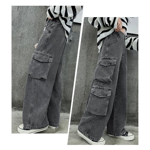 HOT ! Baggy Jeans for Girls Asymmetrical Multi Pockets Cargo Wide Leg Pants Streetwear Cute Jeans for Girls Distressed Washed