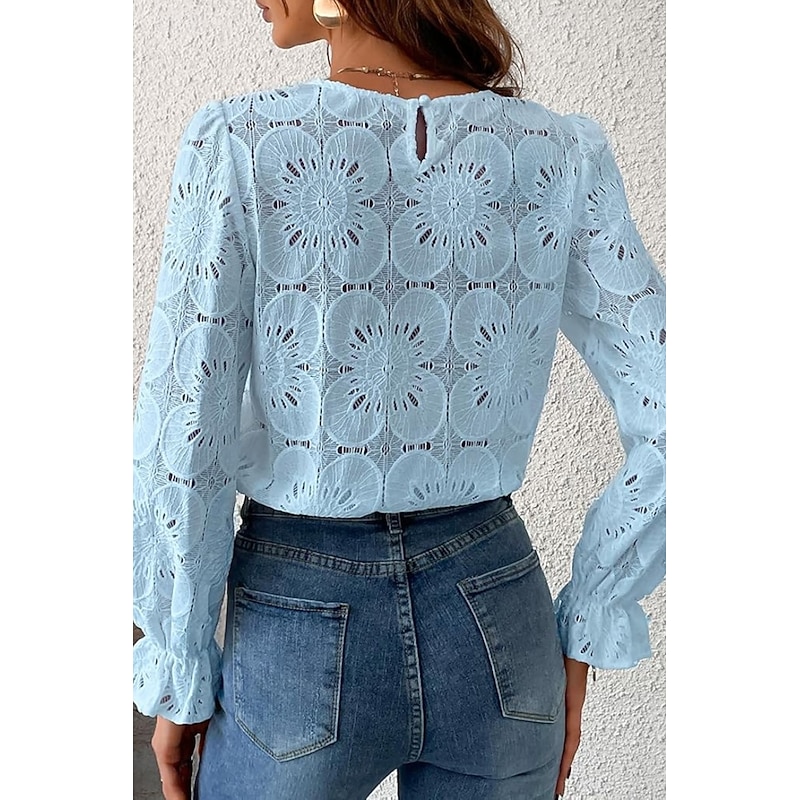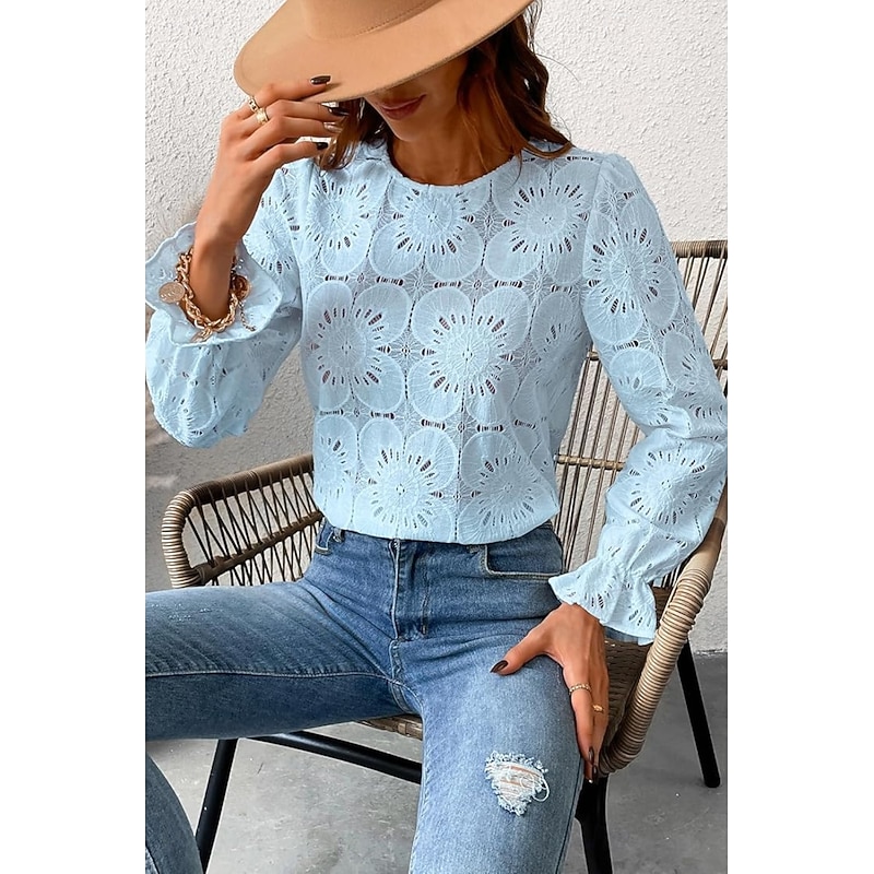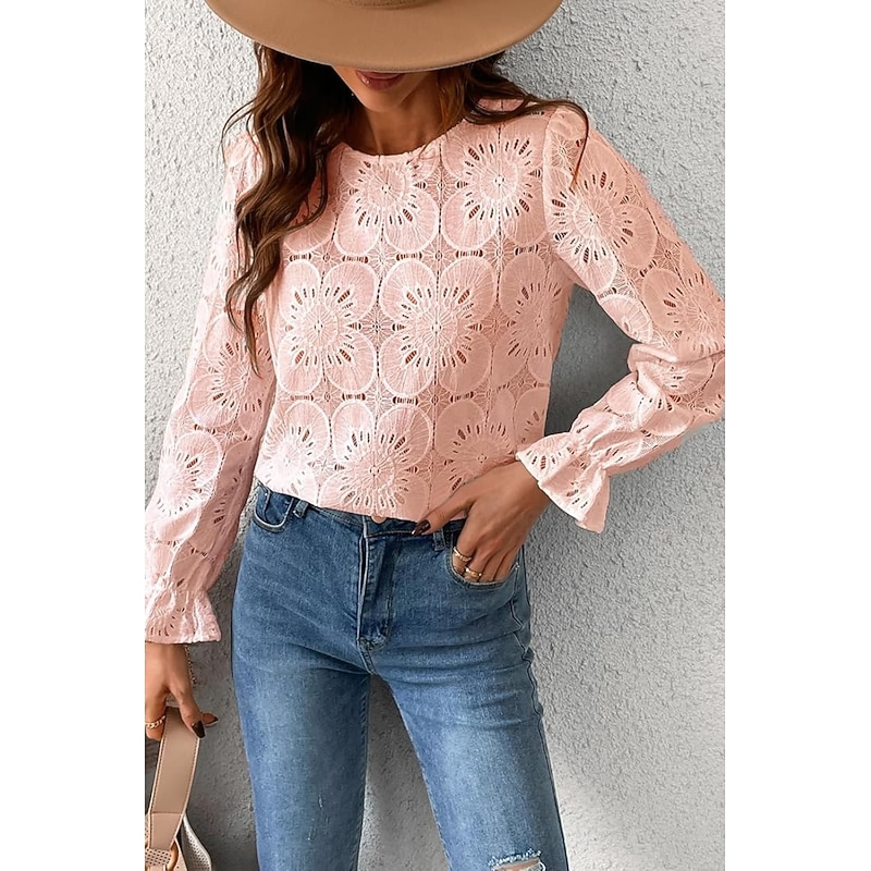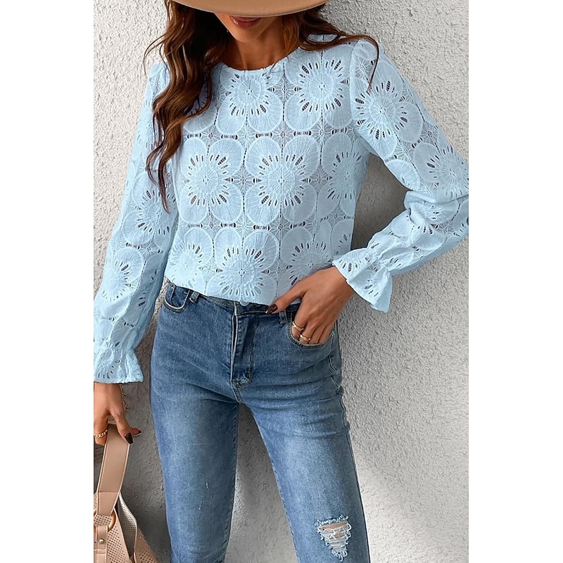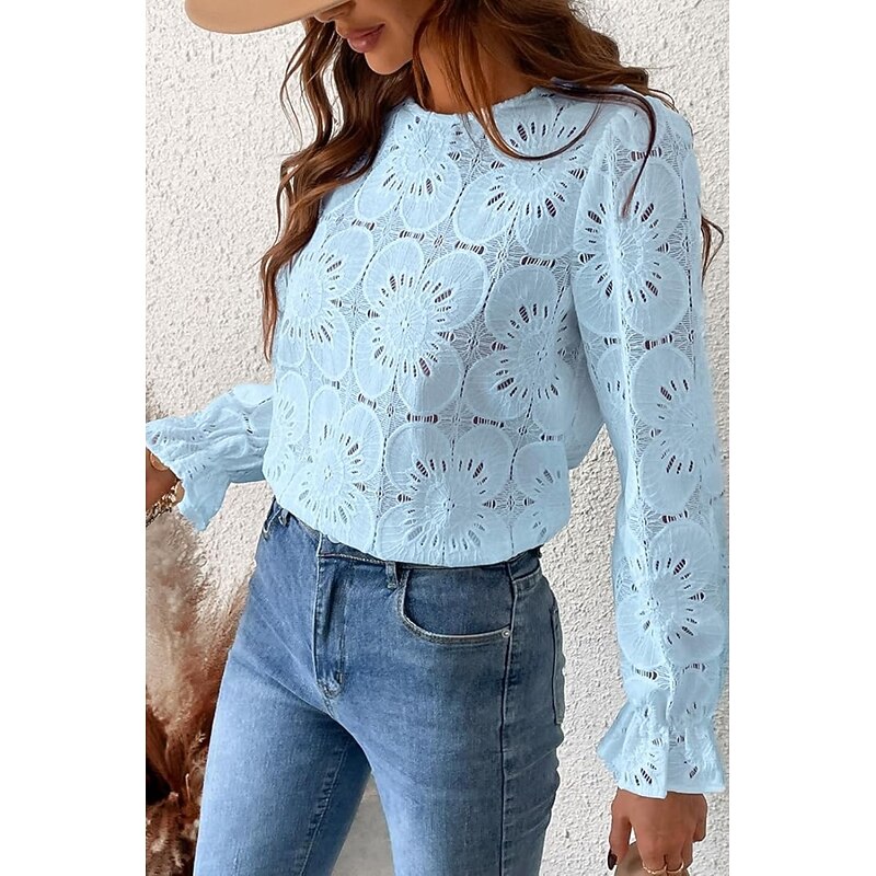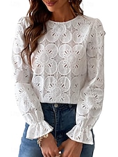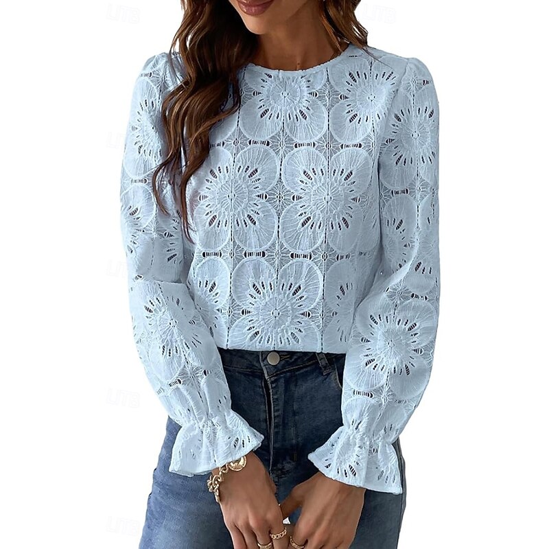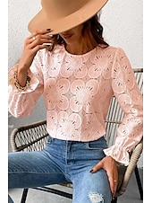 More information about Women's Lace Shirt Blouse Plain Active Casual Long Sleeve Crew Neck Regular Tops Daily Holiday Lace Black White Pink Light Blue Summer