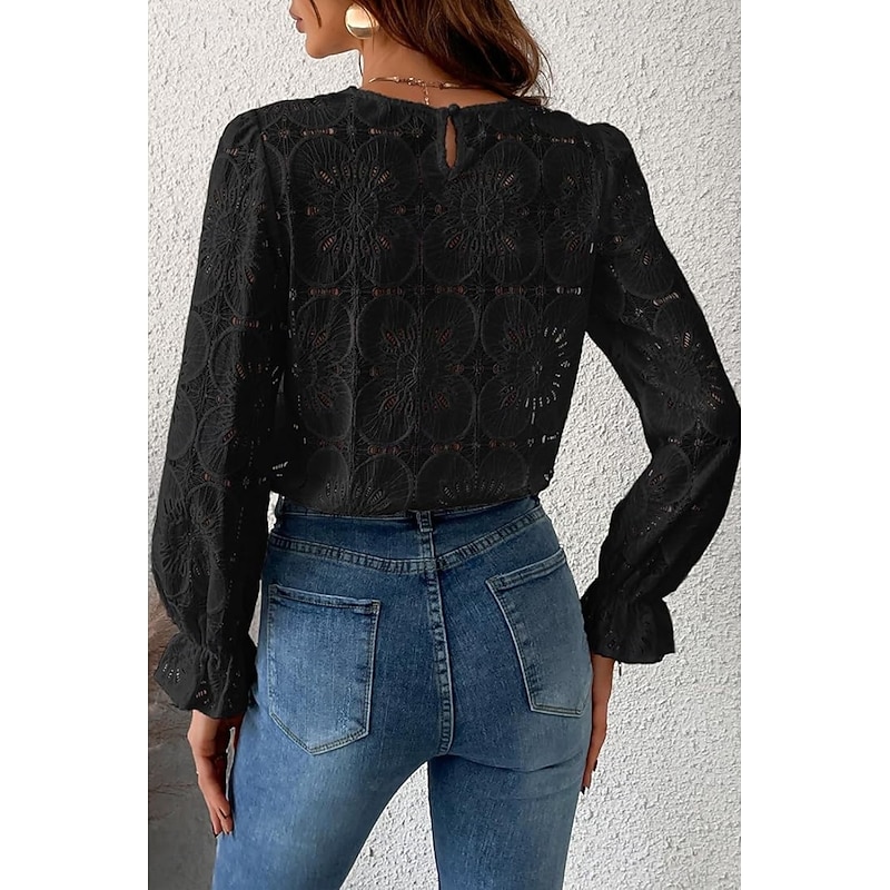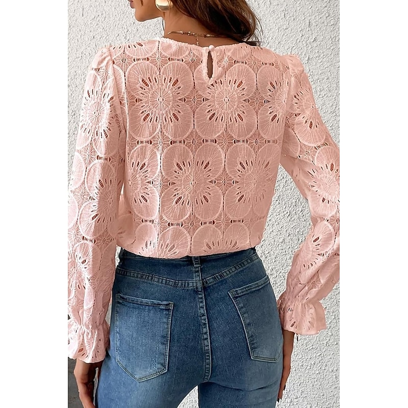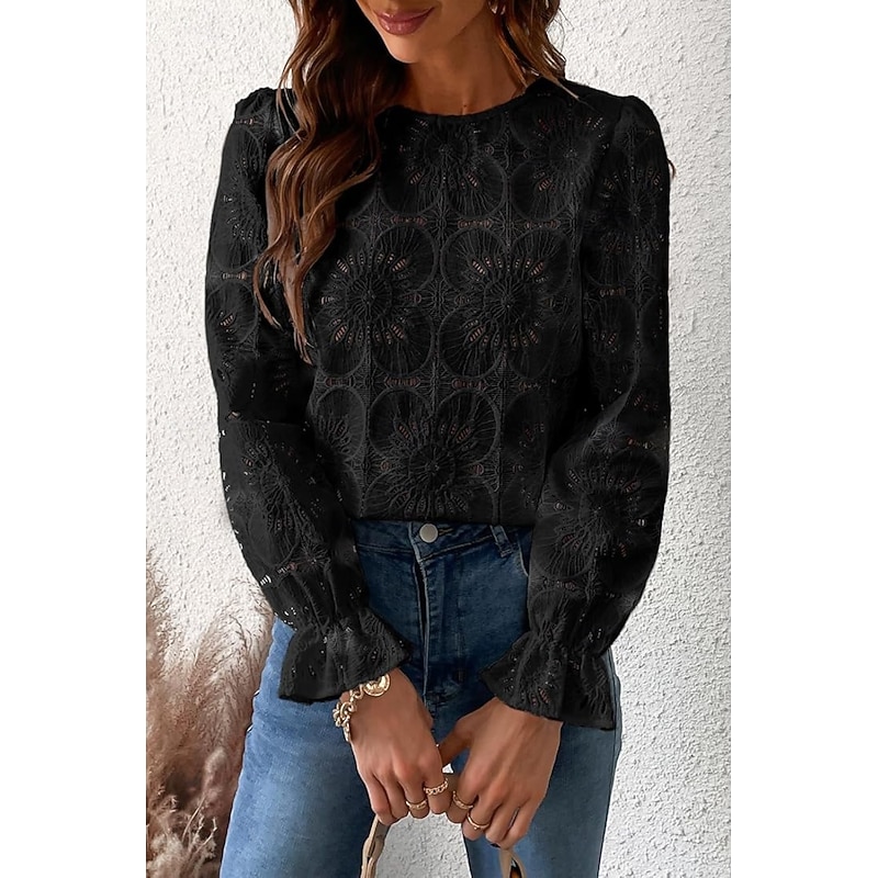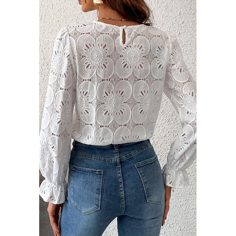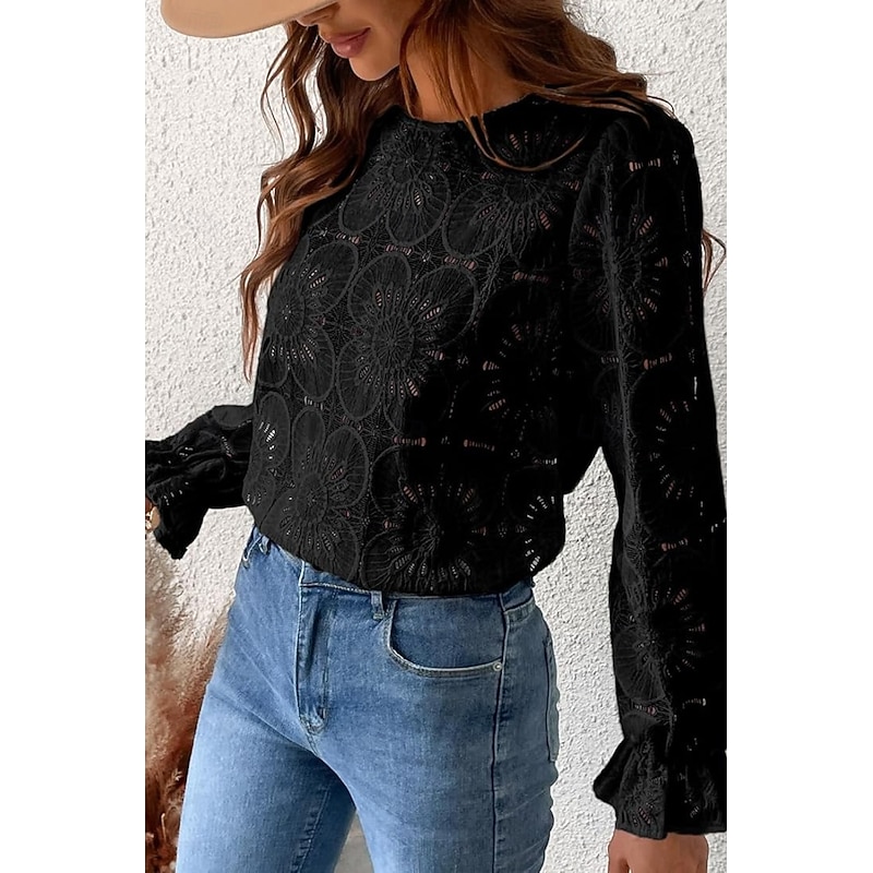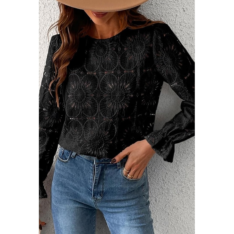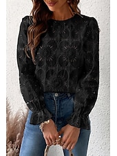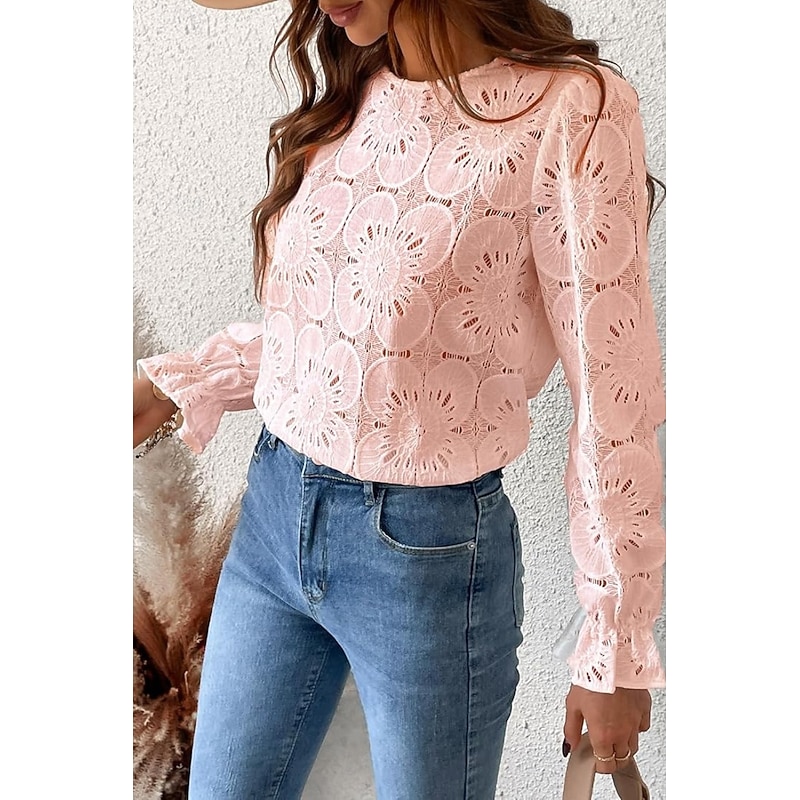 More information about Women's Lace Shirt Blouse Plain Active Casual Long Sleeve Crew Neck Regular Tops Daily Holiday Lace Black White Pink Light Blue Summer