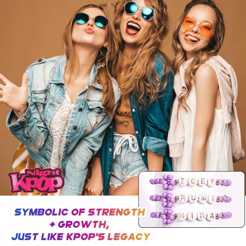 AICase for Kpop Demon Hunters Merch Rumi Zoey Mira Inspired Bracelets 3 Pcs Stackable Stretch Friendship Beaded Bracelets for Huntrix k pop Unique Merchandise Jewelry Gifts for Fans Women Men_Purple 7
