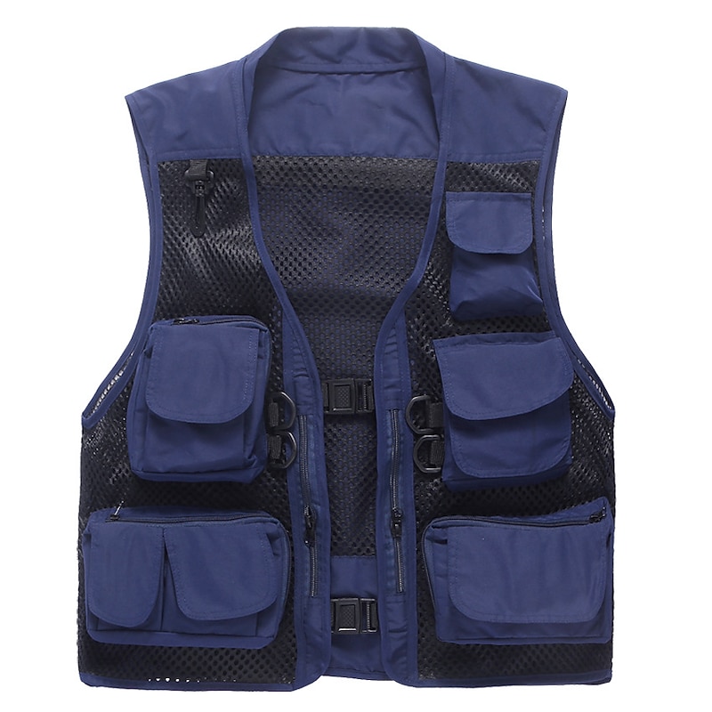 Men's Fishing Vest Hiking Vest Work Vest Outdoor Multi-Pockets Quick Dry Lightweight Breathable Autumn / Fall Spring Summer Vest / Gilet Mesh Camping / Hiking Hunting Fishing Blue khaki Green 11