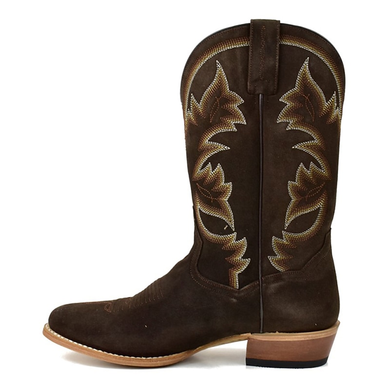 Men's Classic Suede Western Cowboy Boots - Brown Faux Leather Mid-Calf Embroidered Rodeo Style - Perfect for Rodeo, Country Weddings, and Outdoor Events 14
