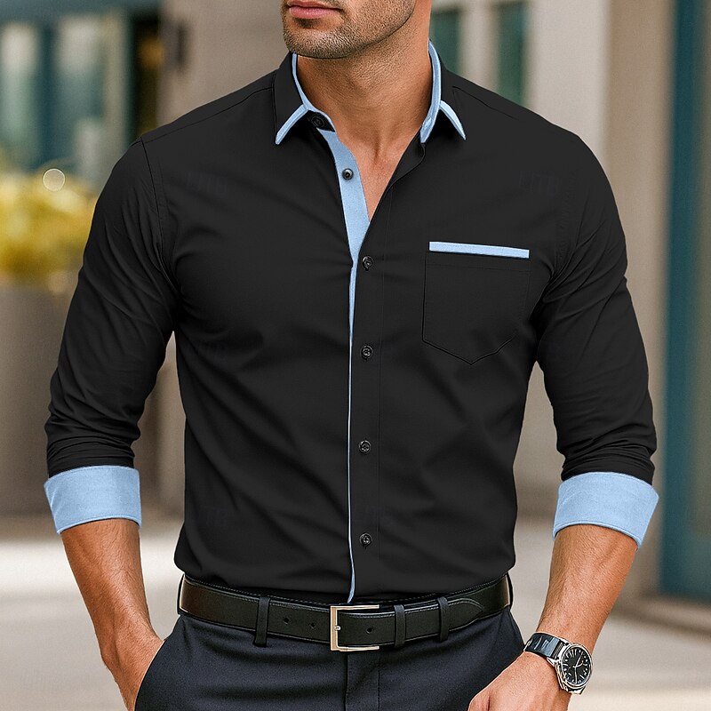 More information about Men's Shirt Dress Shirt Button Down Shirt Non Iron Shirt Button Up Shirt Color Block Wedding Daily Light Blue Black White Light Green Long Sleeve Collar Spring & Fall All Seasons Clothing Apparel