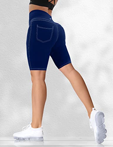 VOOVEEYA 5"/8" High Waisted Yoga Biker Shorts with Pockets for Women - Butt Lifting Workout Spandex Booty Gym Shorts 4