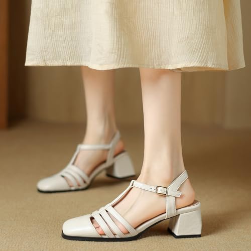 Block Heel Rome Sandals for Women Closed Square Toe T-Strap Pumps Shoes Elegant Buckle Strap Wedding Party Dress Sandals 6
