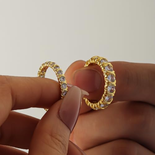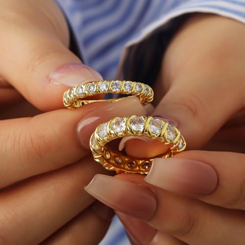 18K Gold Plated Solid CZ Simulated Diamond Stackable Ring Eternity Bands for Women 4mm&6mm Stackable Gold Rings Dainty Fashion Jewelry Promise Engagement Wedding Ring Size 6-10 5