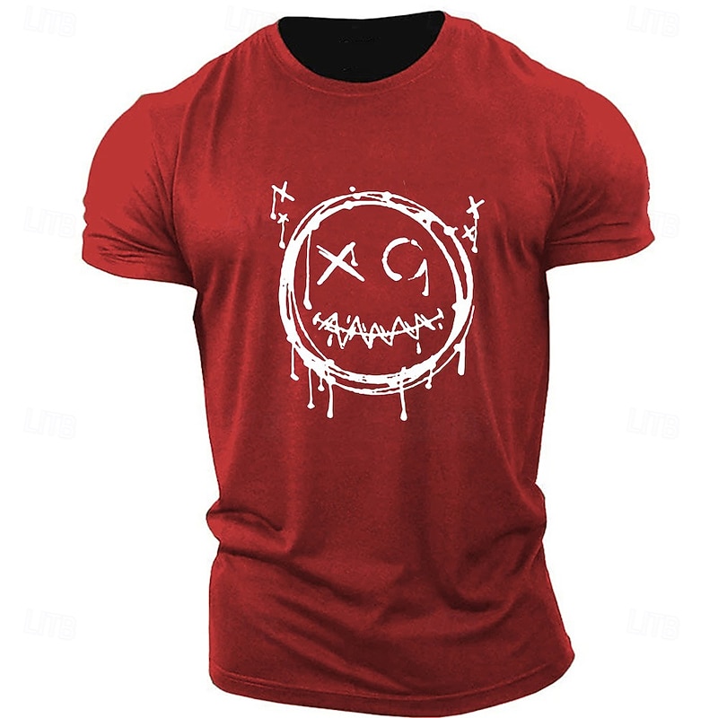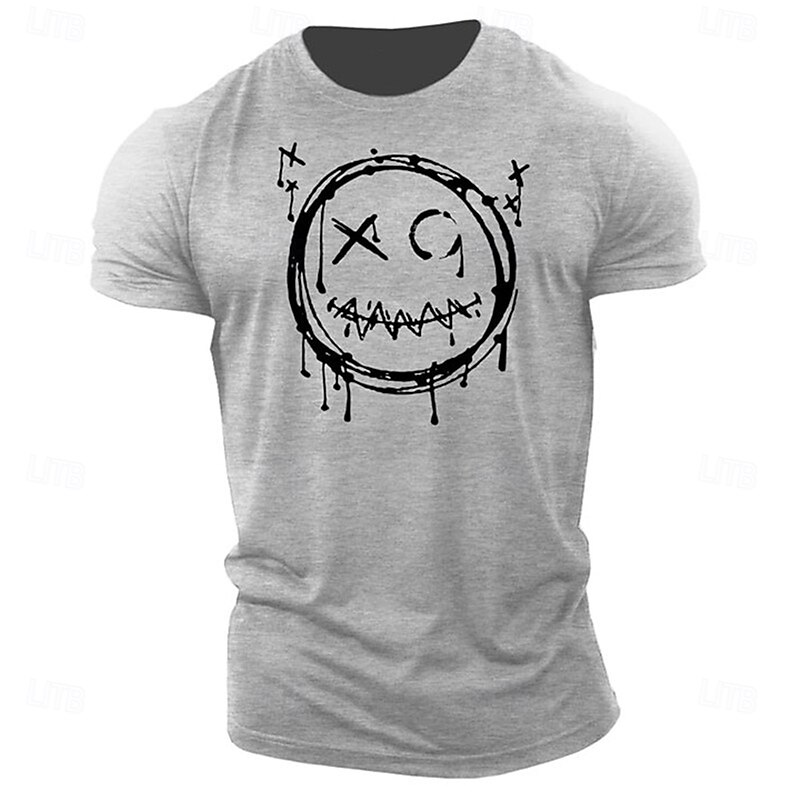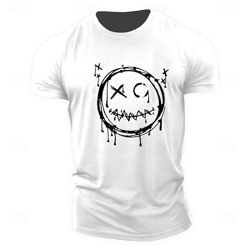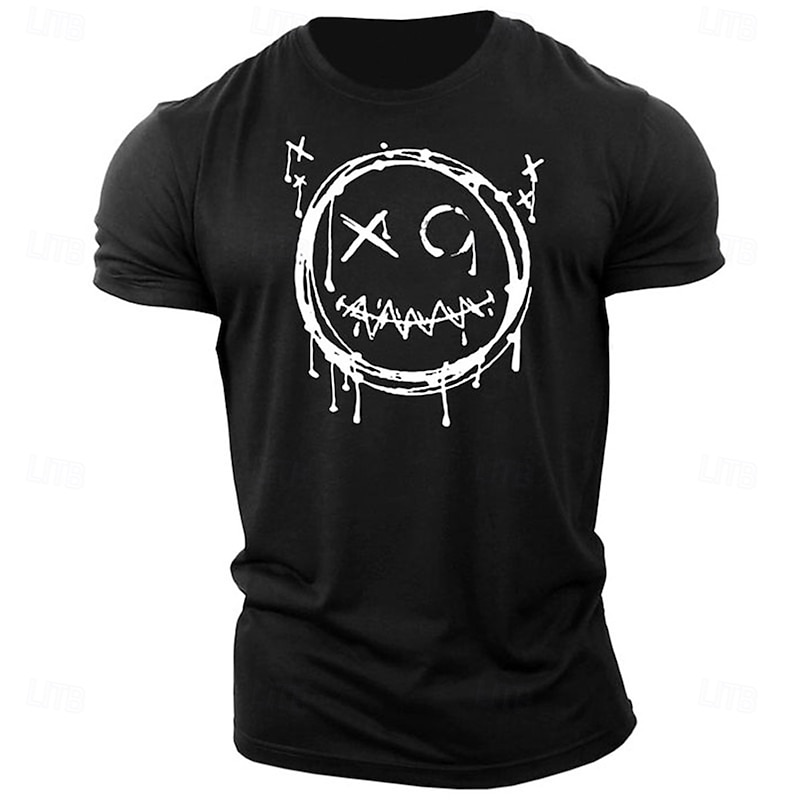 HOT ! Men's Short Sleeve Black Graphic T-Shirt with Distressed Graffiti Smiley Face Print