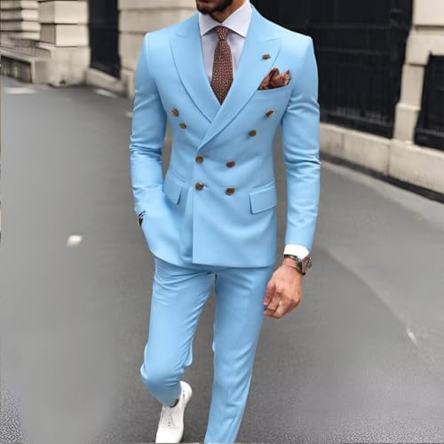 2 Piece Double Breasted Wedding Suits for Men Slim Fit Prom Suit Peak Lapel Formal Suit Blazer Pants Set Suit 2