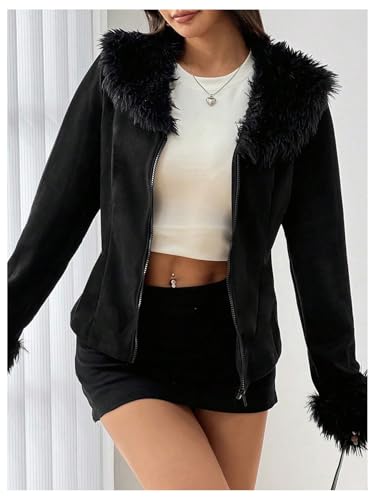 More information about WDIRARA Women's Faux Fur Collar Zip Up Jacket Long Sleeve Suede Jacket Outerwear