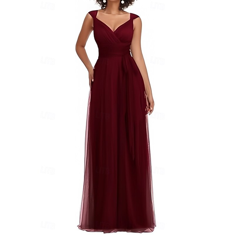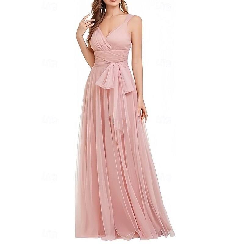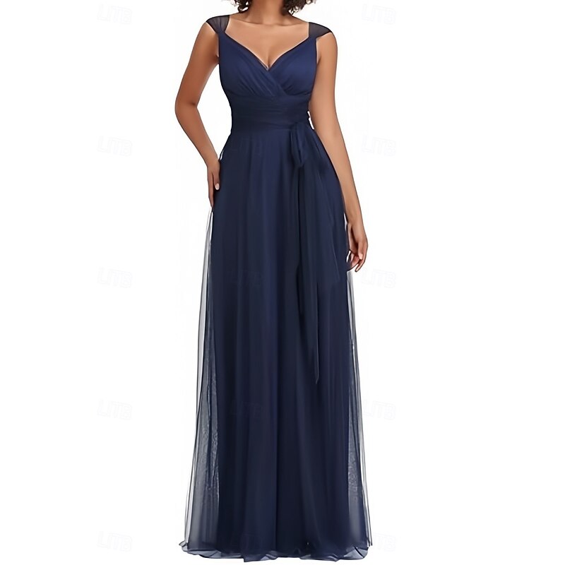 HOT ! A-Line Wedding Guest Dresses Elegant Dress Wedding Guest Engagement Floor Length Sleeveless V Neck Chiffon with Pleats Butterfly
