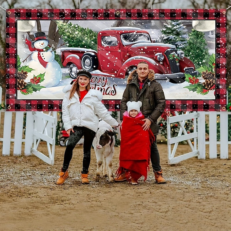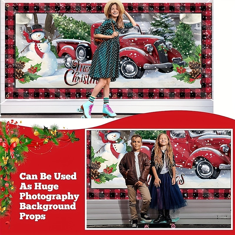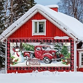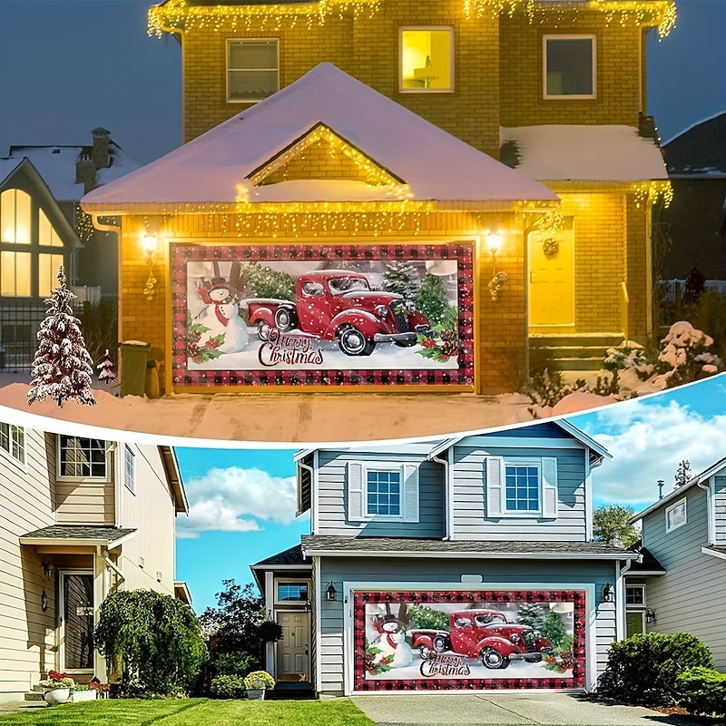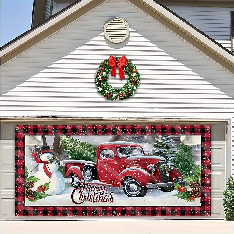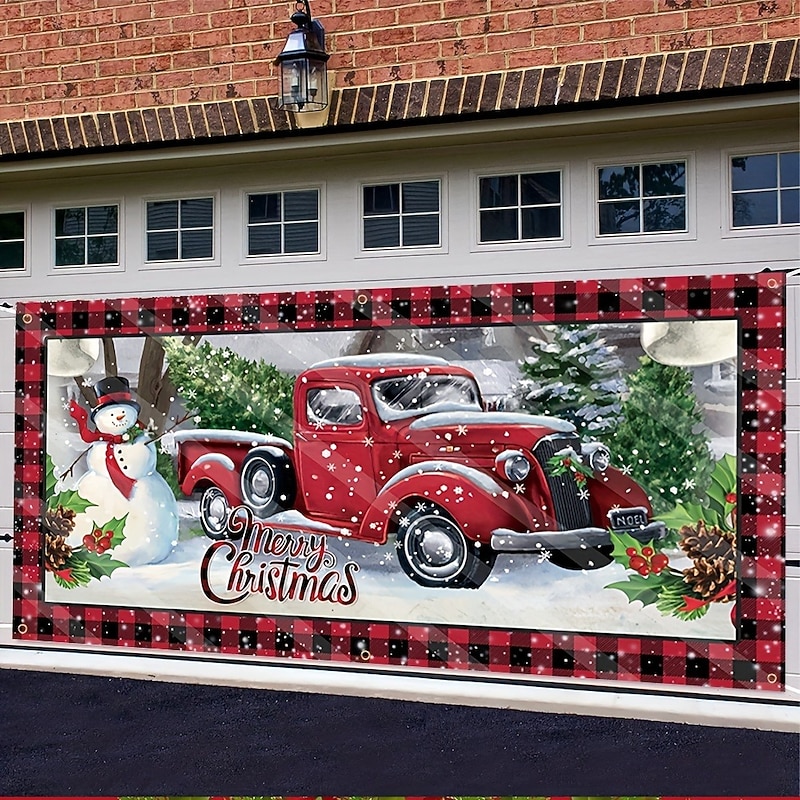 HOT ! Christmas Door Decorations Outdoor Garage Door Cover Xmas Door Banner Gifts Snow Truck Large Door Mural Backdrop Decoration forHoliday Home Wall Decorations