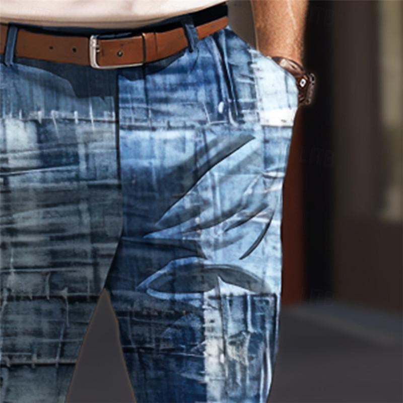 Highlights [Fabric] : These contemporary men's dress pants are crafted from high-quality polyester, providing a lightweight and breathable feel ideal for spring and summer. The material ensures comfort for everyday activities, while the micro-elastic fabric offers ease of movement. [Fit] : Tailored with a relaxed straight-leg fit, these pants feature a flat front and medium waistline, offering a versatile silhouette that seamlessly blends with both casual and business attire. [Design Highlights] : Showcasing a unique color block and geometric 3D print pattern in shades of gray, green, brown, and blue, these trousers feature functional side pockets and come with an adjustable belt. The modern design adds a stylish touch, perfect for those looking to make a statement. [Occasions] : Perfect for outdoor activities, street style, and wear to work environments, these pants are suitable for a range of scenarios. Whether dressing up for a business meeting or dressing down for a casual outing, they provide both style and functionality. [Size] : Available in sizes ranging from S to 3XL, ensuring a comfortable fit tailored to individual preferences and needs.