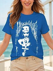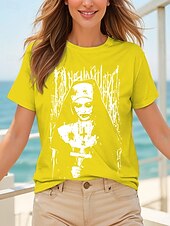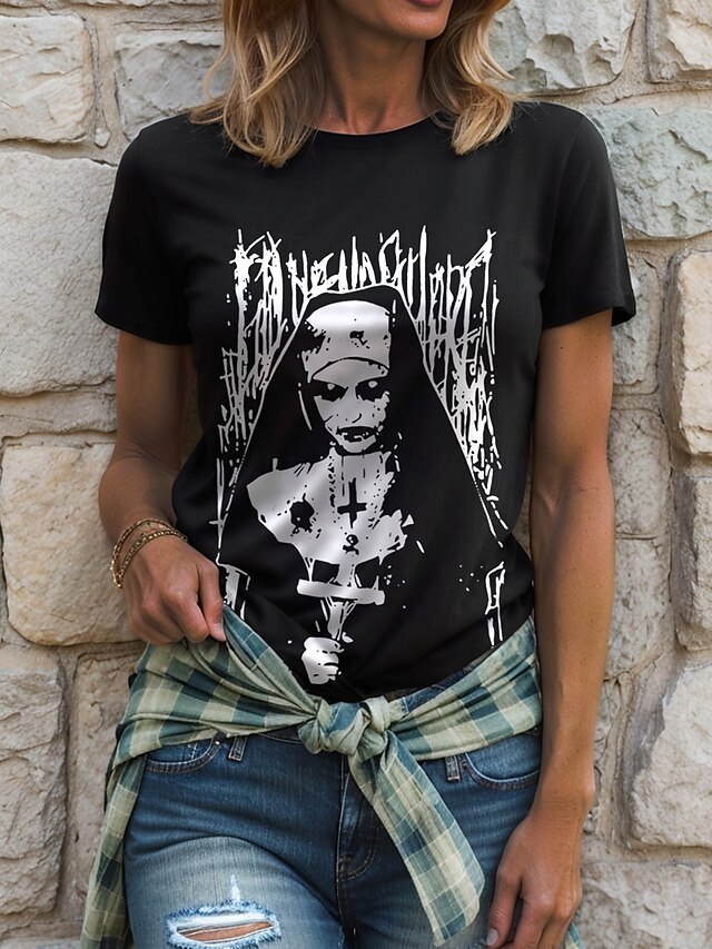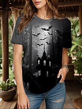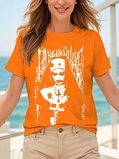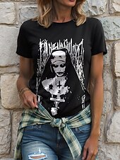 More information about Halloween Women's T Shirt Graphic Ghost Witch Vintage Stylish Classic Short Sleeve Crew Neck Round Neck Regular Tops Daily Weekend Print Black Yellow Pink Red Blue Summer Fall