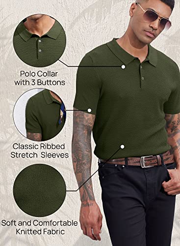 Men's Knit Button Polo Shirts Short Sleeve Casual Knitted Polo Tops Golf Shirts 6