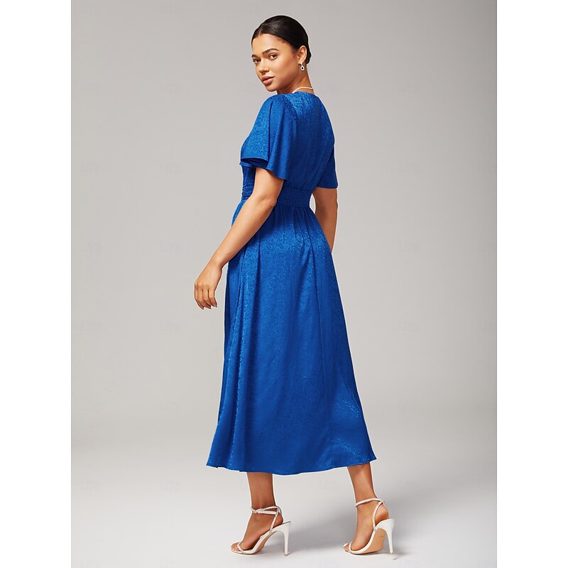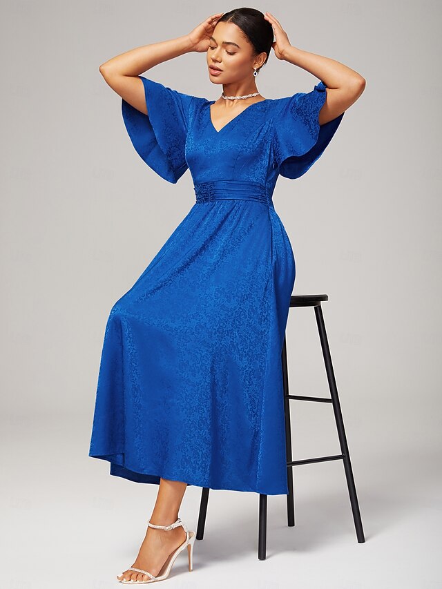 More information about Women's Wedding Guest Royal Blue Maxi Dress V Neck Subtle Jacquard Lustrous Satin Elegant Stylish Noble Waist Cinching Slim Fit Party Daily Fall