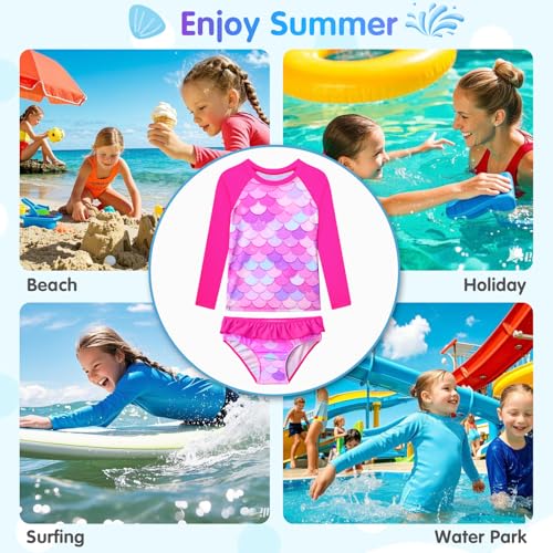 Girls Swimsuit Size 5-6 Years Old Rash Guard Bikini Sets Two Piece Bathing Suits Rose Scale Swimwear 4