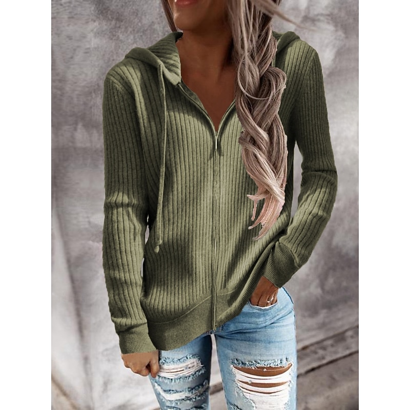 More information about Women's Sweater Cardigan Elegant Fashion Streetwear Solid Color Hooded Zipper Knitted Long Sleeve Regular Tops Knit Outdoor Daily Weekend Black White Fall Winter