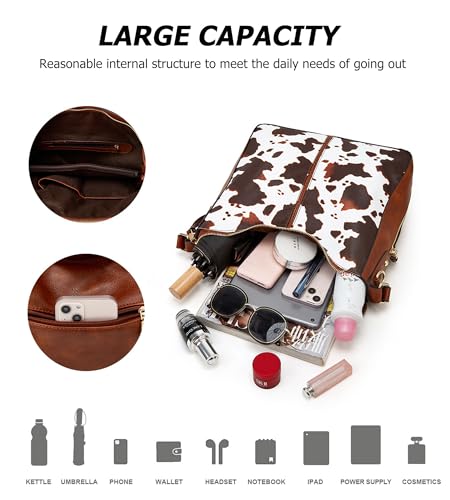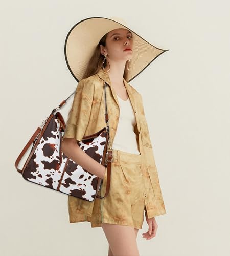 • Chic Functional Cowhide Set: Elevate your style with these premium cowhide purses and handbags, featuring a bold cow print design on durable brown leather. The set includes a roomy cow print tote bag, a crossbody bag, and a coordinating wallet —perfect for everyday versatility.