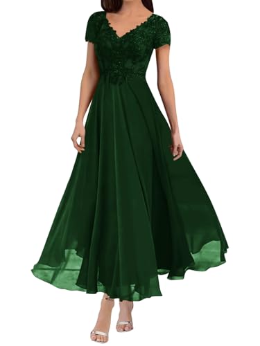 • 【Material】: High quality chiffon fabric, mother of the bride dresses tea length short sleeve formal evening party gown, short lace wedding dresses, mother of the groom dresses for wedding, mother of the bride dresses for wedding long