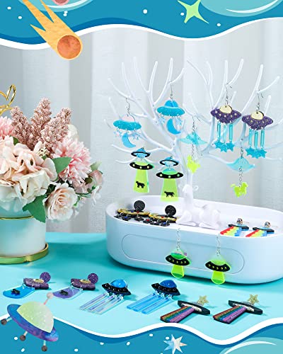 Yinkin 10 Pairs UFO Aliens Earrings for Women Space Weird Acrylic Earrings Flying Saucer Dangle Novelty Fun Glitter Cute Jewelry for Girls, Multiple Colors 6