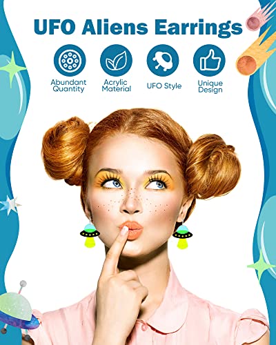 Yinkin 10 Pairs UFO Aliens Earrings for Women Space Weird Acrylic Earrings Flying Saucer Dangle Novelty Fun Glitter Cute Jewelry for Girls, Multiple Colors 2