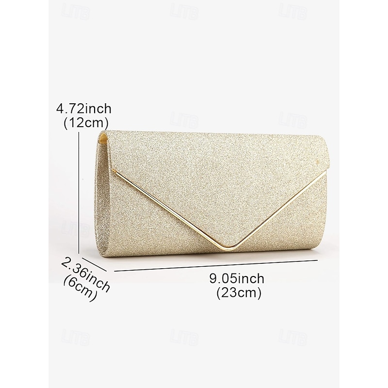 Women's Gold Glitter Envelope Clutch with Chain Strap – Elegant Evening Bag for Weddings and Parties 17