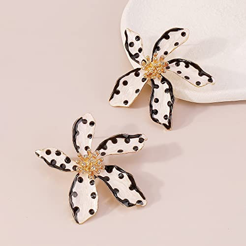 HOT ! Flower Stud Earrings Polka Dot Flower Floral Earrings Cute Polka Dot Pattern Elegant Dangle Earrings for Women