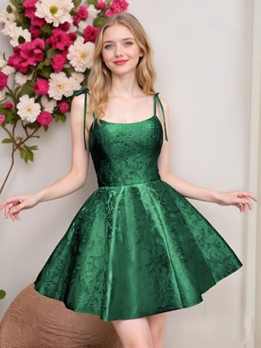 • Homecoming Dress Features---satin homecoming dresses for teens short,spaghetti straps,a-line,scoop neck,lace up back,embroidery/jacquard/floral satin,with pockets,asymmetrical hemline silhouet,above knee length.